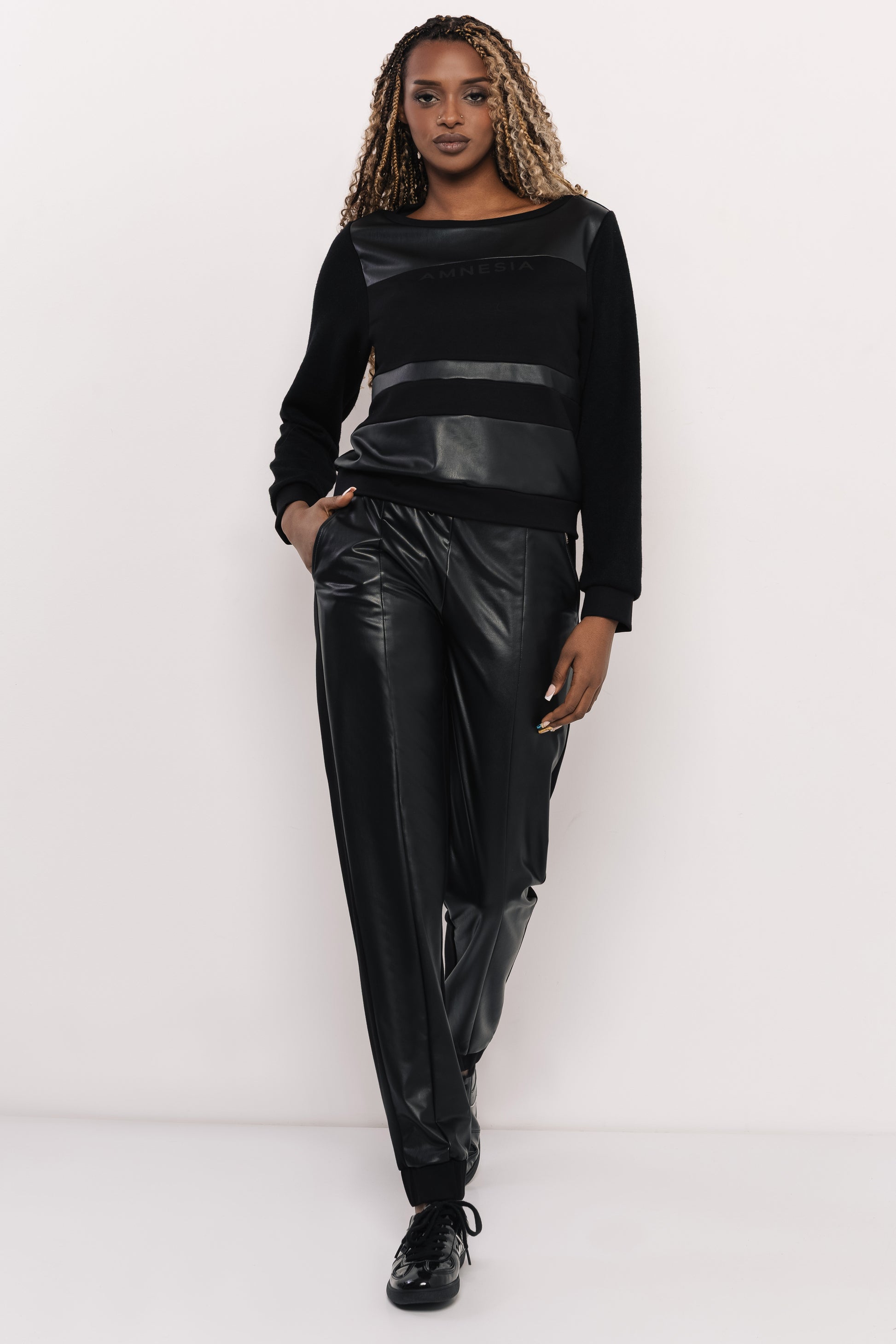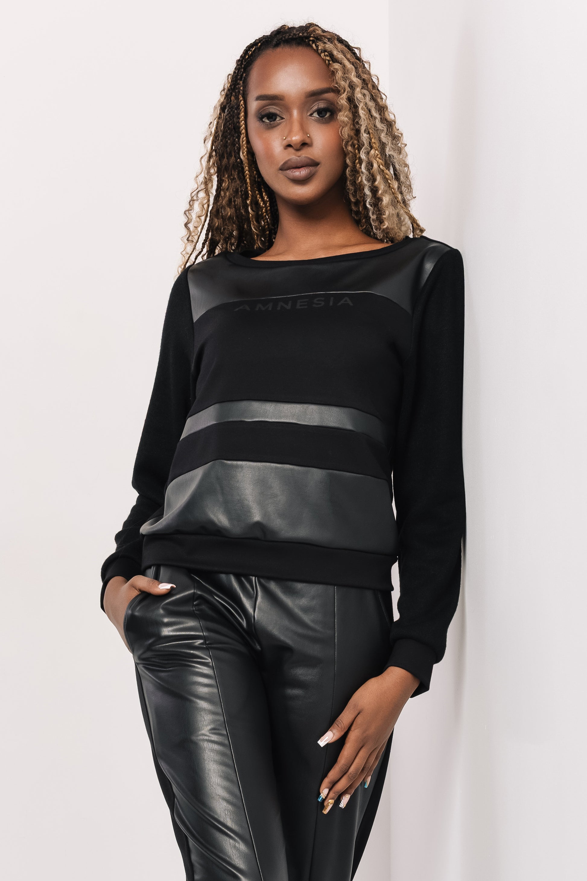 Az AMNESIA Oli pulcsi a vagány és elegáns vonalat ötvözi — letisztult fekete alap, amelyet látványos műbőr betétek tesznek különlegessé. Ez az a fajta pulcsi, amitől azonnal összeáll a szett, akár hétköznapokról, akár egy lazább esti programról van szó. A punto anyag puha és rugalmas, a műbőr panelek pedig izgalmas textúrát adnak hozzá. A fazon kényelmes, enyhén lezser, mégis csinosan követi a test vonalát. S, M, L és XL méretekben elérhető, fekete színben, amelyet könnyű bármivel kombinálni. Viseld farmerrel egy vagányabb lookhoz, vagy párosítsd az Origo nadrággal egy összhangban lévő AMNESIA szettért. Fedezd fel, mennyire sokoldalú darab, és csapj le rá az amnesia.hu webshopon!