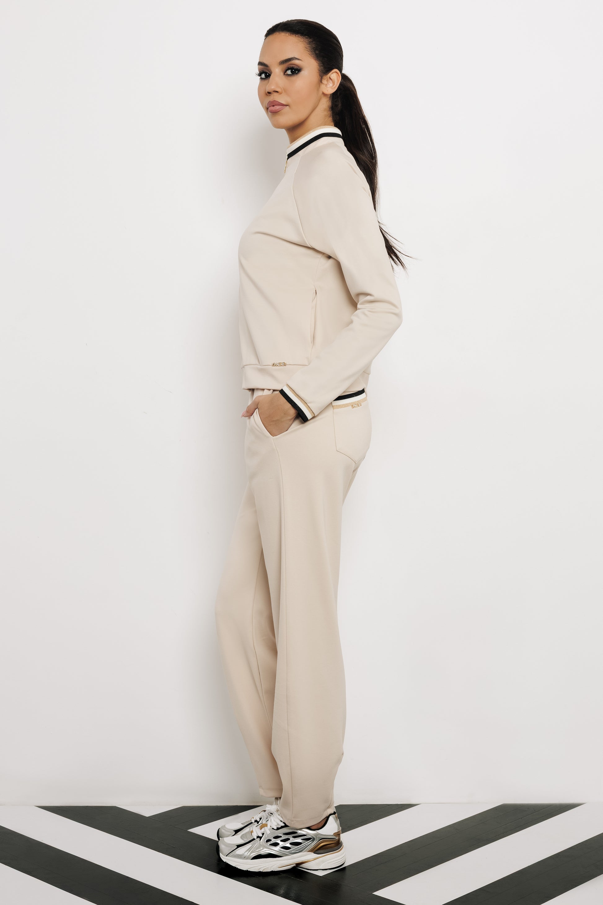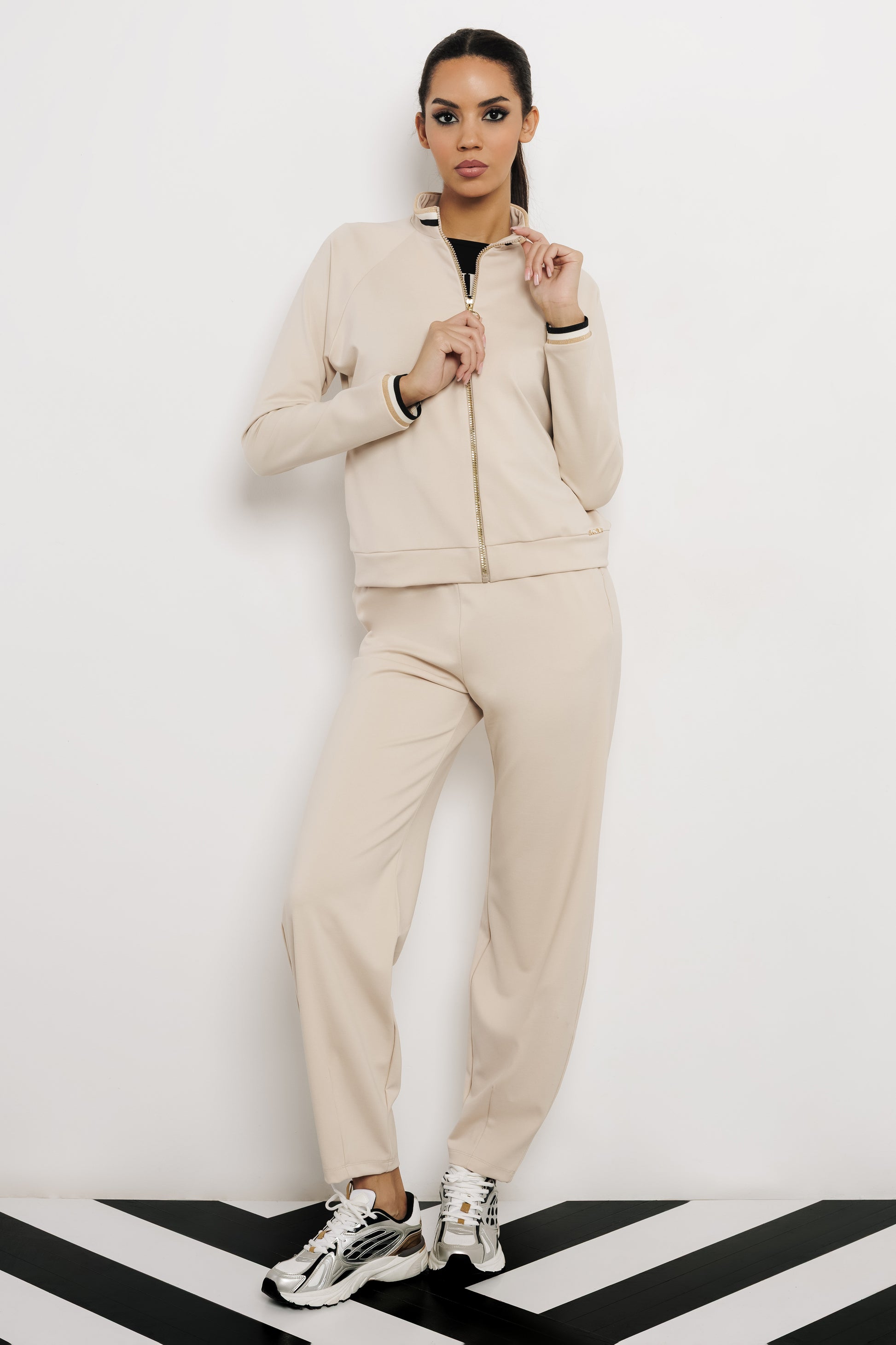 Az AMNESIA Sierra szabadidő együttes azoknak készült, akik egy letisztult, tavaszi szettet keresnek, ami egyszerre sportos és stílusos. A felső és a nadrág együtt harmonikus összképet ad, a vonalvezetés és a részletek pedig gondoskodnak róla, hogy ne kompromisszumként, hanem tudatos választásként viseld. A punto anyag kellemes tapintású, rugalmas és szépen követi a test vonalát, viselés közben megőrzi formáját és nem gyűrődik könnyen. A felső kényelmesen záródik, a nadrág dereka jól illeszkedik, így egész napos hordásnál is komfortos marad. A fazon S–M és L–XL méretben érhető el. Szettben viselve a legjobb, sportcipővel városi programokhoz, letisztult sneakerrel utazáshoz vagy hétköznapi rohanós napokra is ideális. Bézs és fekete színben is könnyen kombinálható más AMNESIA darabokkal, így a felső és a nadrág külön is jól beilleszthető a ruhatárba.