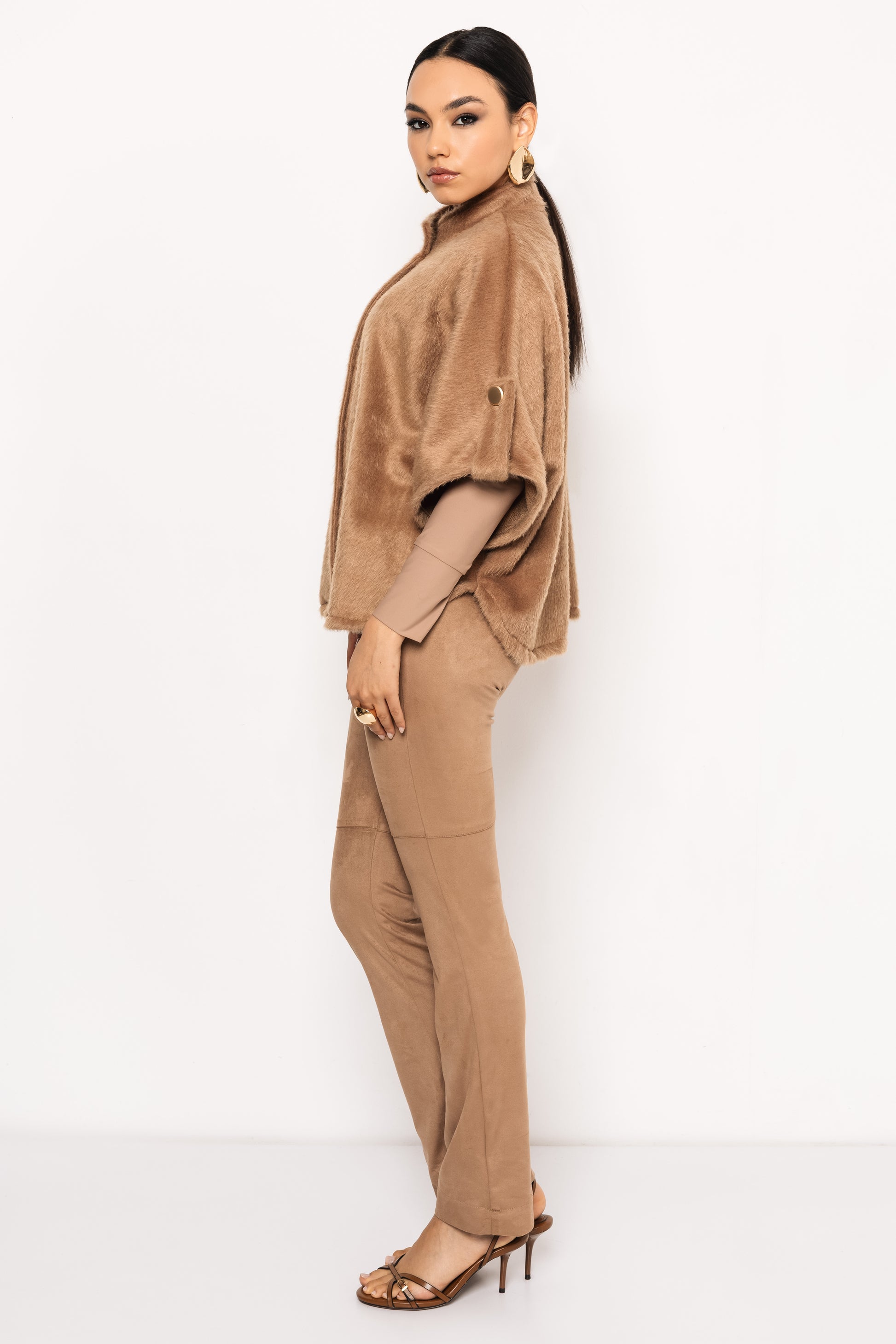 Az AMNESIA Kobalt pelerin az a darab, amely azonnal különleges, kifinomult kisugárzást kölcsönöz. A puha szőrme anyag lágyan omlik a vállra, melegséget és luxusérzetet adva viselőjének, miközben a klasszikus pelerin fazon egyszerre időtálló és stílusos választás. Ez a modell most három gyönyörű árnyalatban érkezett: a természetes és elegáns dohány, a klasszikus fekete, valamint a finom pezsgő színben. Mindhárom változat tökéletes kiegészítője lehet az őszi-téli ruhatárnak, hiszen könnyedén kombinálható alkalmi összeállításokhoz, de hétköznapi szettekhez is feldobja a megjelenést. Egy egyszerű nadrágos szetthez vagy egy elegáns ruhához párosítva is letisztult, mégis emlékezetes hatást kelt. Tedd teljessé a szezonra szóló stílusodat az AMNESIA Kobalt pelerinnel, és válogass a dohány, fekete és pezsgő árnyalatok között az amnesia.hu webshopon, amíg elérhető!
