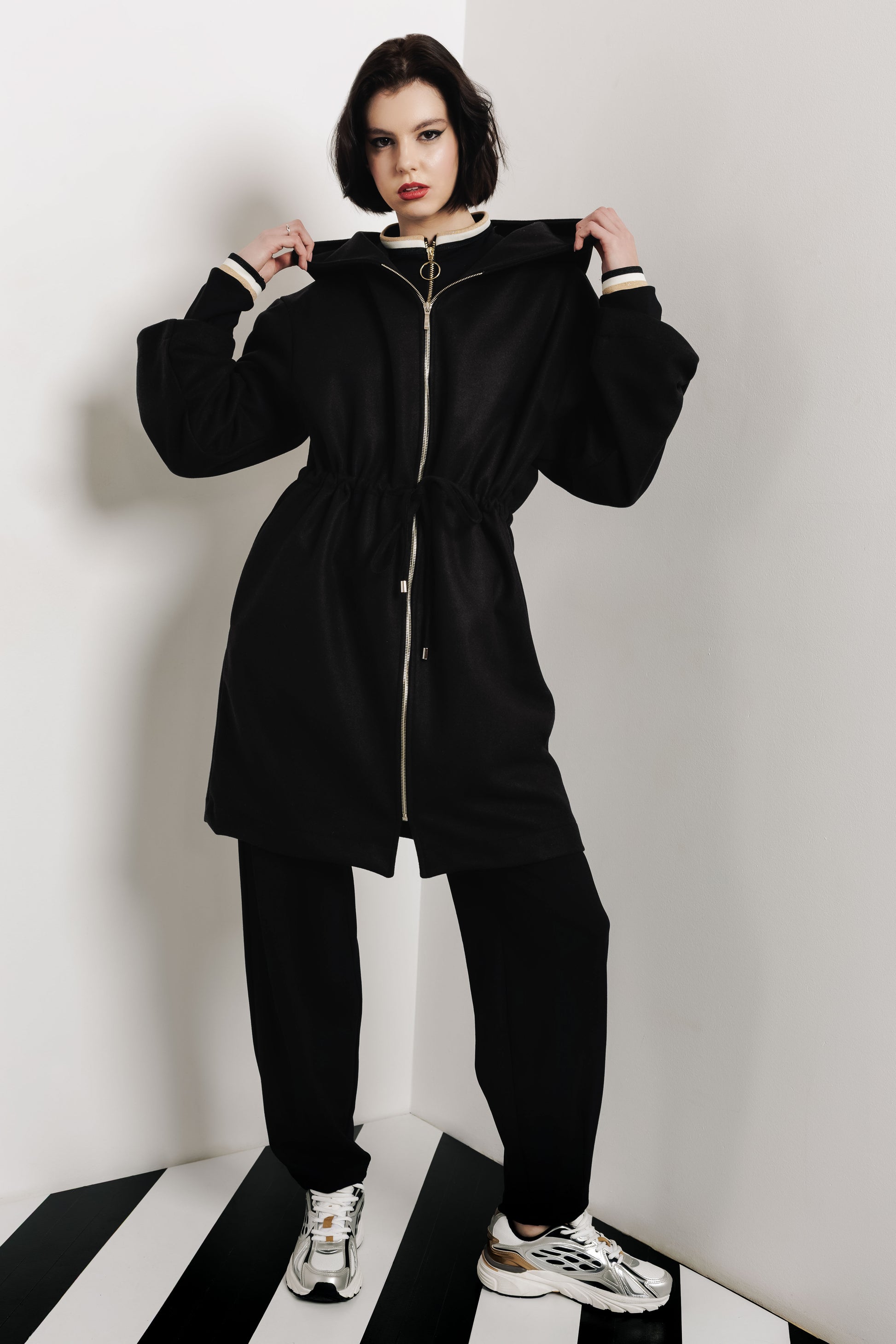Az AMNESIA Verso kabát határozott megjelenést ad, miközben letisztult formavilágával könnyen illeszkedik a tavaszi szettekhez. A fekete és homok színváltozatok klasszikusak, mégis friss hatást keltenek, így jól kombinálhatók a tavaszi kollekció világos és sötétebb darabjaival egyaránt. A kapucnis kialakítás és a derékrész állíthatósága karakteres megjelenést eredményez. Kabátszövet anyagból készült, amely puha tapintású, mégis jól tartja a fazont. A derékrész húzószára lehetővé teszi, hogy a kabát vonalvezetése igény szerint alakítható legyen. S–M és L–XL méretezésben érhető el, így különböző testalkatokhoz is jól illeszkedik. Nadrággal és szoknyával egyaránt jól kombinálható, sportos cipővel és elegánsabb lábbelivel is más karaktert kap. Ajánlott városi sétákhoz, hétköznapi programokra vagy utazáshoz, amikor fontos a rendezett, mégis könnyen komfortos viselet.