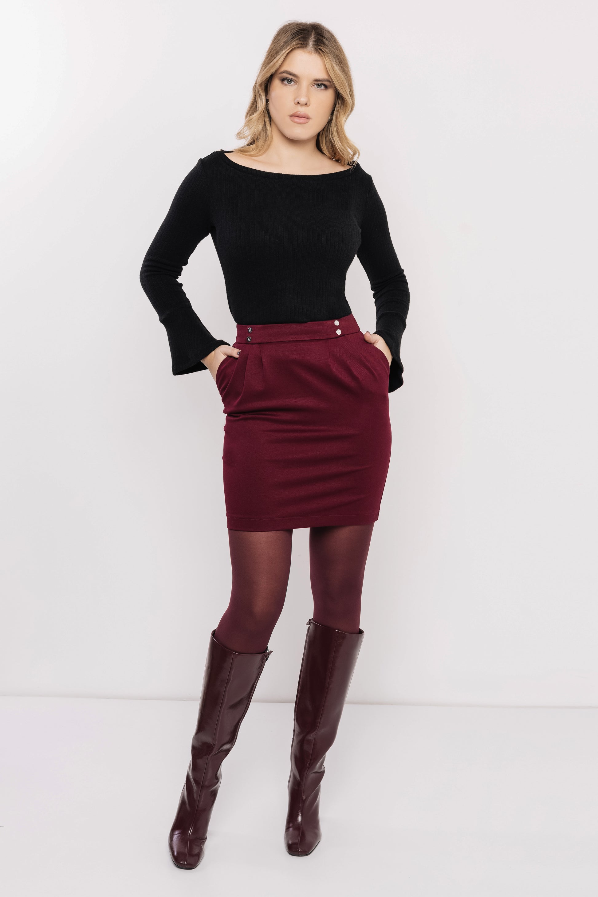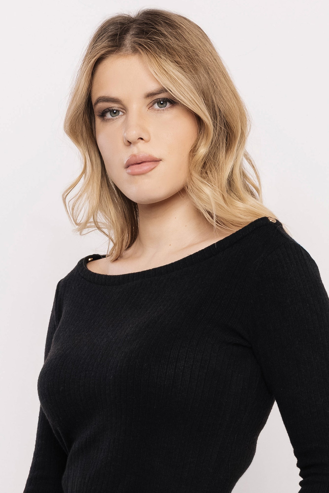 Az AMNESIA Angin felső egyszerre nőies és modern darab. Bordás kötött anyaga lágyan követi a test vonalát, miközben a csónaknyak és az enyhén bővülő ujjvég különleges, elegáns részleteket ad viselőjének. Az apró fém logó diszkrét, mégis jellegzetes AMNESIA-stílust tükröz. Elérhető fekete, bézs és ekrü színben – minden árnyalat más karaktert ad: az ekrü friss és letisztult, a bézs finoman nőies, míg a fekete klasszikusan elegáns. Kombináld a Toronto szoknyával és csizmával, vagy viseld farmerrel egy lazább, de sikkes összeállításban. Egy felső, ami minden alkalomra bevethető – keresd kedvenc színedben az amnesia.hu webshopon, és tedd a gardróbod alapdarabjává!
