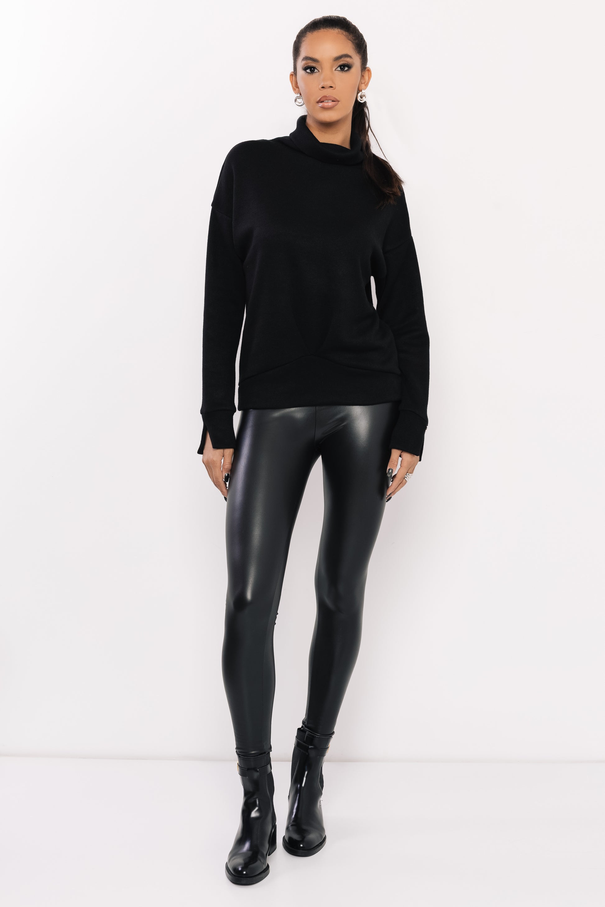 Az AMNESIA Blem felső letisztult fazonja és vastag kötött anyaga azonnal a kedvenc őszi-téli daraboddá válik. A garbónyak nőies és praktikus, a díszgombos ujja pedig finom részlet, ami különlegessé teszi ezt az alapdarabot. Elérhető fekete, csokibarna és bordó színben, így könnyen beilleszthető bármelyik gardróbba. Kombináld bőrhatású nadrággal, például az AMNESIA Kabul modellel, vagy viseld ceruzaszoknyával, ha elegánsabb hatást szeretnél. Egy stílusos, sokoldalú felső, amit újra és újra elő fogsz venni – válaszd ki a kedvenc árnyalatod az amnesia.hu webshopon!