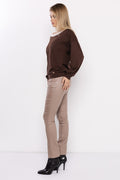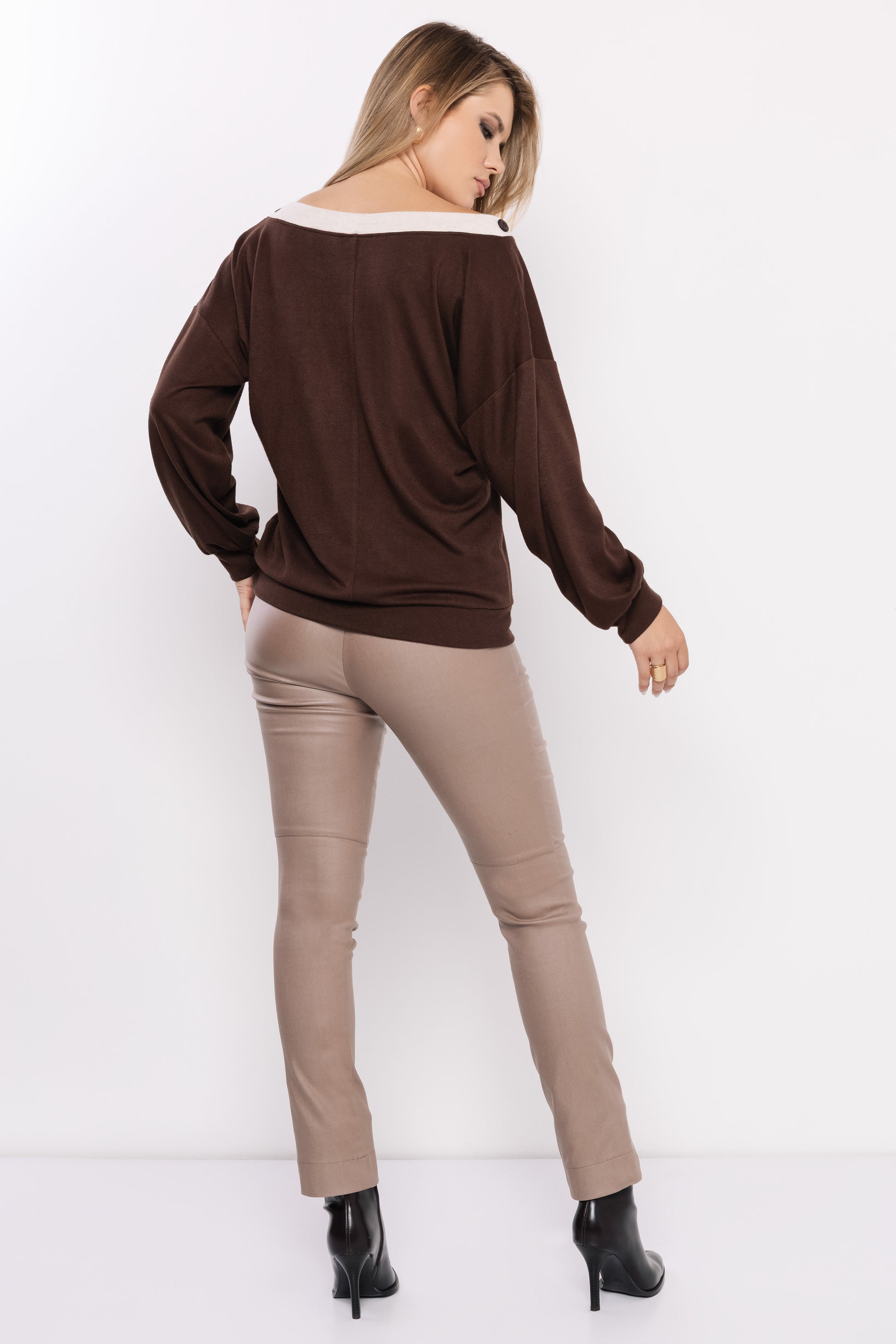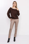 Az AMNESIA Dafne felső a könnyed elegancia és a kényelmes hétköznapi viselet tökéletes egyensúlyát hozza el. Lágy esésű, finom kötött anyaga gyönyörűen simul a testhez, miközben a bővebb ujjrész és a leheletnyi ejtett vállvonal légies, nőies karaktert ad a darabnak. A vállon elhelyezett díszgomb finom, mégis feltűnő részlet, ami elegánsan emeli ki a fazont. Viseld a Dafne felsőt klasszikus műbőr nadrággal és csizmával egy letisztult, modern megjelenéshez, vagy kombináld farmerrel és sportcipővel egy lezserebb, nappali outfithez. A fazon előnye, hogy a test vonalát követi anélkül, hogy túlságosan feszülne, így minden alakon mutatós és komfortos választás. Ha egy igazán univerzális, szezonokon át hordható darabot keresel, az AMNESIA Dafne felső a legjobb döntés: nőies és modern — pont annyira különleges, hogy minden alkalomhoz passzoljon. Fedezd fel a bézs és barna-bézs árnyalatokat az amnesia.hu webshopon, és tedd a kedvenceddé ezt a stílusos alapdarabot!