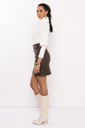 Az AMNESIA Elbrusz garbó egy stílusos alapdarab, ami nélkül nincs őszi-téli szezon. Finoman bordázott, puha kötött anyaga kellemesen meleg, míg a magas nyakú fazon és a leheletnyit bő ujjak kifinomult, nőies hatást keltenek. A könnyed esés és a letisztult szabás miatt önmagában és rétegezve is tökéletesen mutat. Elérhető ekrü és fekete színekben – az ekrü friss és világos tónust visz az outfitedbe, a fekete pedig elegáns, örök klasszikus. Kombináld az AMNESIA Aurora szoknyával vagy Kabul nadrággal egy stílusos, modern szettért. Ez a garbó a finom elegancia kulcsdarabja – válaszd ki a kedvenc színed, és tedd a kosaradba az amnesia.hu webshopon, mielőtt elfogyna!
