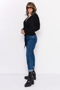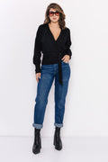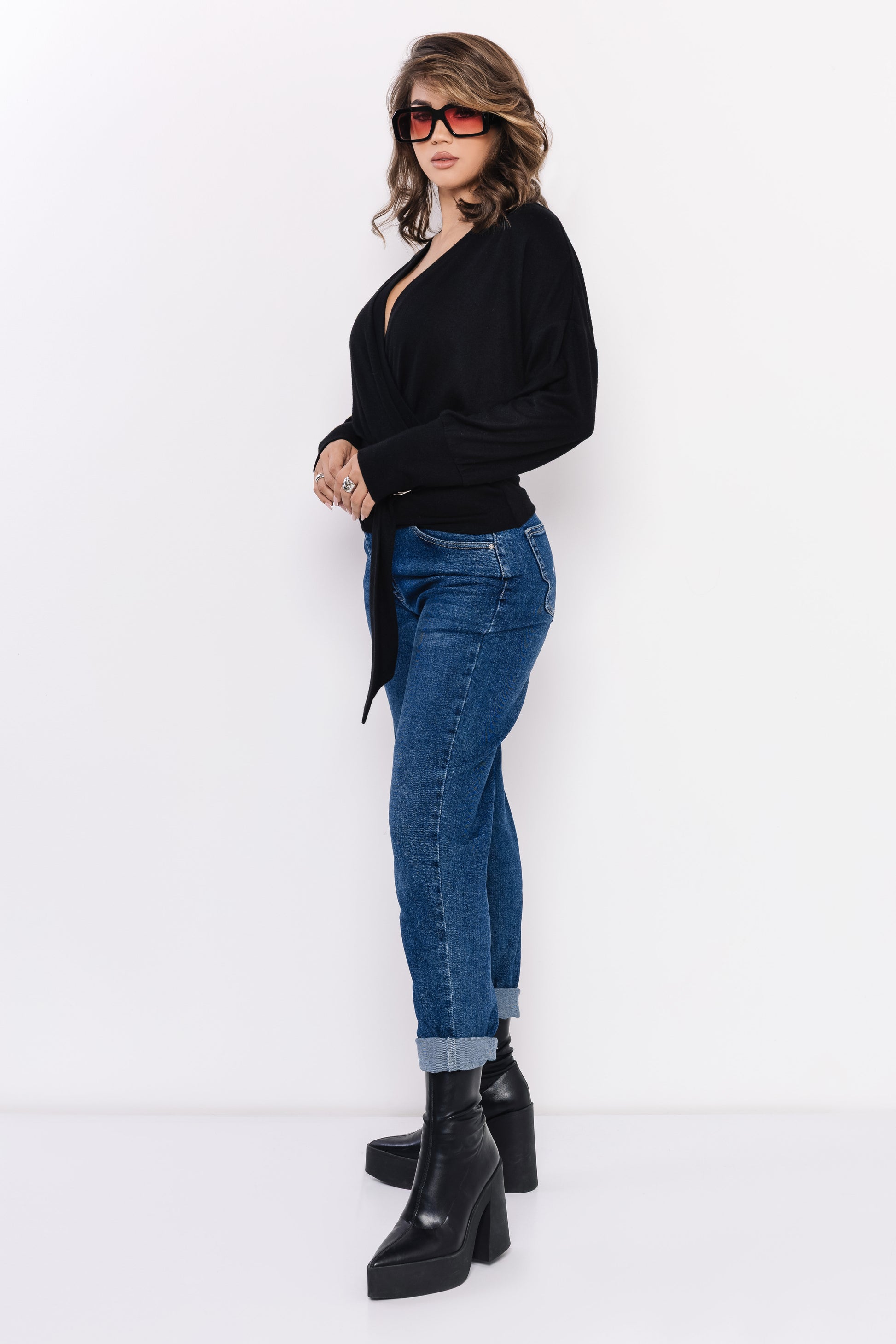 Az AMNESIA Latifa felső a klasszikus elegancia és a modern stílus találkozása. A puha kötött anyagból készült, megkötős fazon lágyan követi az alakot, miközben a mély V-kivágás és a hosszú megkötő pánt nőies és kifinomult megjelenést biztosít. A derékrészen elhelyezett fémkarikás öv részlet játékosan hangsúlyozza a sziluettet, és karakteres stílust ad az összhatásnak. A felső fekete, bordó és ekrü árnyalatban elérhető, egyméretű kialakítása miatt tökéletesen illeszkedik különböző testalkatokhoz. Könnyű, rugalmas kötött anyaga kényelmes viseletet garantál, így akár hétköznapokra, akár elegánsabb alkalmakra is ideális választás. Viseld az AMNESIA Latifa felsőt magas derekú nadrággal vagy bőrhatású szoknyával, de egy egyszerű farmerrel is könnyed, sikkes hatást érhetsz el. Ne hagyd ki ezt a nőies felsőt – szerezd be most az amnesia.hu webshopon, amíg elérhető!