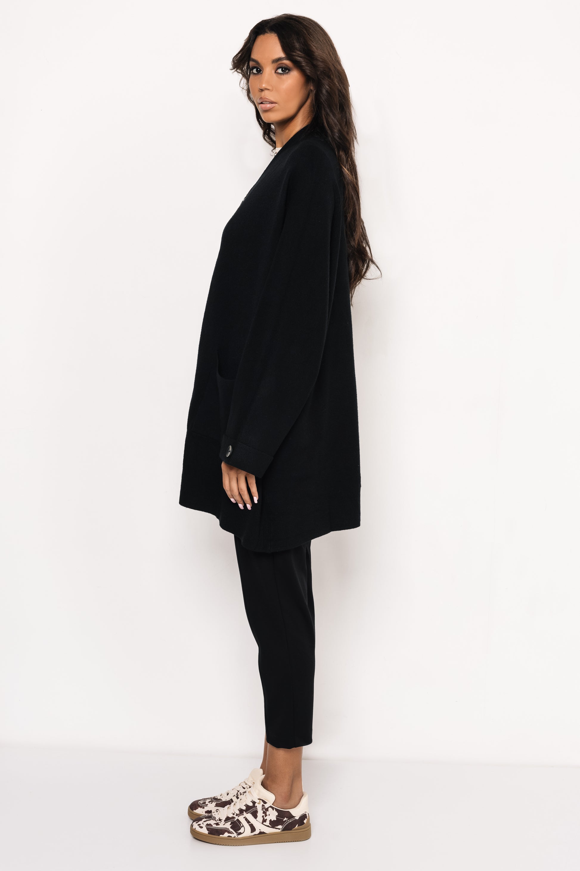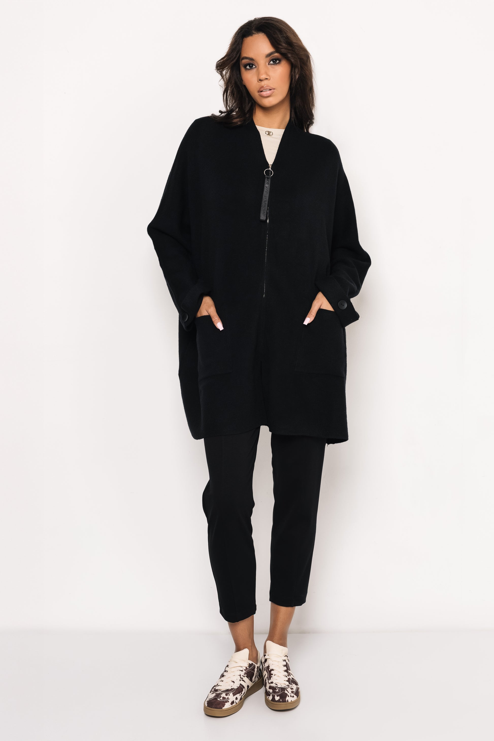 Az AMNESIA Odeng kardigán a kötött darabok új kedvence: oversize, lezser szabásvonala szabad mozgást biztosít, miközben modern, minimalista hatást kelt. A letisztult V-nyakkivágás cipzáros megoldással és diszkrét rávarrt zsebekkel egészül ki, a bő ujjakat gombbal záródó mandzsetta teszi kifinomulttá. A kényelmes egyméretes fazon minden alakon jól mutat, és könnyedén variálható a mindennapokban. Szürke és fekete színben érhető el, így könnyen illeszthető bármely gardróbba. A vastagabb kötött anyag gondoskodik a puha tapintásról és a meleg érzetéről, miközben a kardigán könnyed esése nőies vonalakat kölcsönöz. Viseld az AMNESIA Odeng kardigánt az AMNESIA Lazil szoknyával vagy Zila nadrággal a sportos-elegáns szettekhez, de egyszerű AMNESIA felsőkkel is tökéletes párost alkot. Szerezd be az AMNESIA Odeng kardigánt az amnesia.hu webshopon, amíg elérhető!