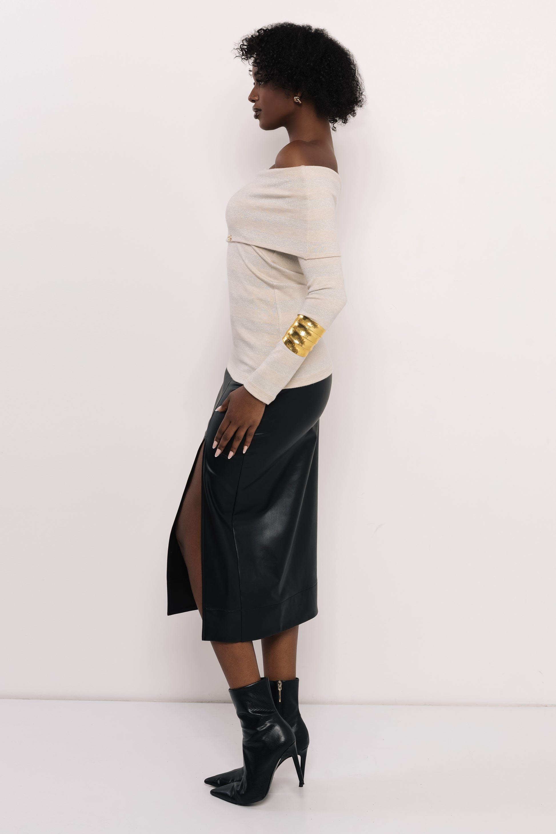 Az AMNESIA Pipo felső azoknak szól, akik szeretnek egy kicsit elegánsabb, finoman csillogó darabokat viselni a hétköznapokban is. A lurexes kötött anyag visszafogott fényt ad, miközben puha és rugalmas marad, így egész nap komfortos viselet. A fazon különlegessége a szélesen lehúzható, vállakat szabadon hagyó gallér, amely nőies és könnyed hatást kelt. A testhez igazodó, enyhén ráncolt derékrész szépen formál, a hosszú ujj pedig kiegyensúlyozza a felső nyitottságát. Két színben elérhető: bordóban és bézsben — mindkettő jól illik a szezon árnyalataihoz. Styling tipp: bézs változatát kombinálhatod fekete műbőr szoknyával elegáns esti hatáshoz, a bordó pedig jól feldobja egy egyszerű leggings és egy magas szárú csizma. Egy AMNESIA bőrhatású nadrággal is erős, modern szettet ad. Válaszd ki a számodra legszebb árnyalatot az amnesia.hu webshopon, és tedd különlegessé vele a következő outfitedet!