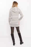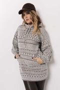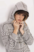 Az AMNESIA Ravenna tunika a kötött darabok kedvelőinek készült: meleg és kényelmes, mégis mutatós a geometrikus mintának köszönhetően. Tökéletes választás a hűvös napokra, amikor szeretnél rétegezni, de nem akarsz lemondani a nőies megjelenésről. A fazon hosszabb, tunikaszabású, kényelmes kapucnival és húzózsinórral. A mintás, lurexes kötött anyag puha és rugalmas, így szépen illeszkedik anélkül, hogy tapadna. A laza ujjmegoldás pedig jól rétegezhető aláöltözőkkel is. Az egyméretes kialakítás sok alkaton működik, a geometrikus minta pedig élénk, modern karaktert ad a darabnak. Styling tipp: viseld műbőr legging-szel és csizmával, ahogy a fotón látható, vagy kombináld egyszerű farmernadrággal a hétköznapokra. Hidegebb időben jól mutat hosszú AMNESIA kabát alatt is. Fedezd fel az amnesia.hu webshopon, és tedd a Ravenna tunikát a szezon egyik legpraktikusabb, mégis nőies darabjává.