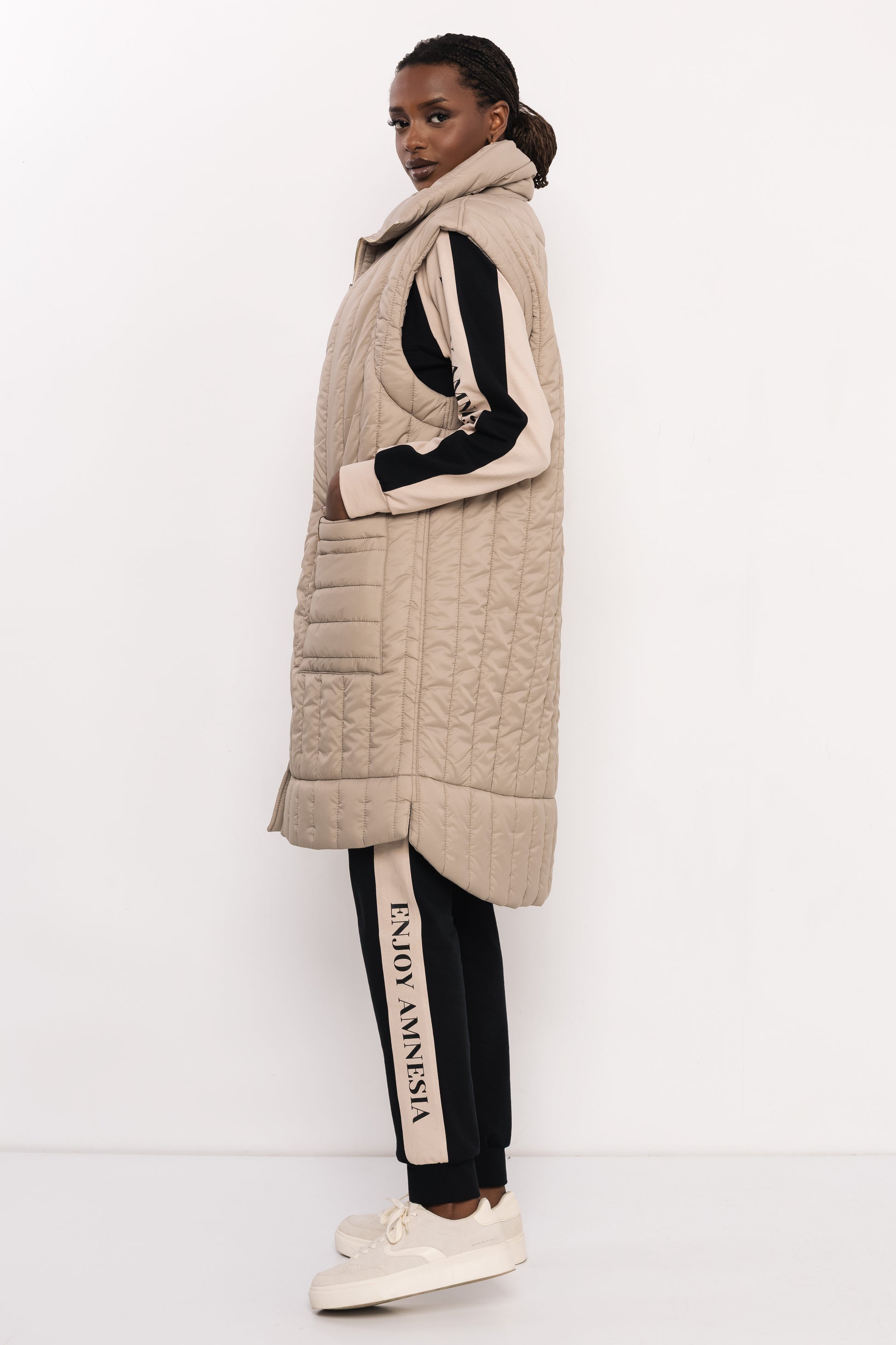 Az AMNESIA Nord mellény tökéletes társ a hűvösebb napokra, amikor réteges öltözködéssel szeretnél stílusos maradni. A steppelt orkán anyag és a trendi szín modern, sportos megjelenést kölcsönöz, miközben könnyedén kombinálható a gardróbod más darabjaival. Egyméretes kialakítása és a magas állógallér praktikus megoldást kínál a szél és a hideg ellen, a nagy méretű zsebek pedig kényelmet és funkcionalitást biztosítanak. A fazon hosszított szabása karcsúsítja az alakot, miközben laza, mégis rendezett sziluettet ad. Viseld sportcipővel és farmerrel a hétköznapokban, vagy párosítsd elegáns csizmával és kötött ruhával a városi sétákhoz. Tedd kosárba az AMNESIA Nord mellényt az amnesia.hu webshopon, és alakítsd ki vele a szezon legpraktikusabb és legegyedibb szettjeit!