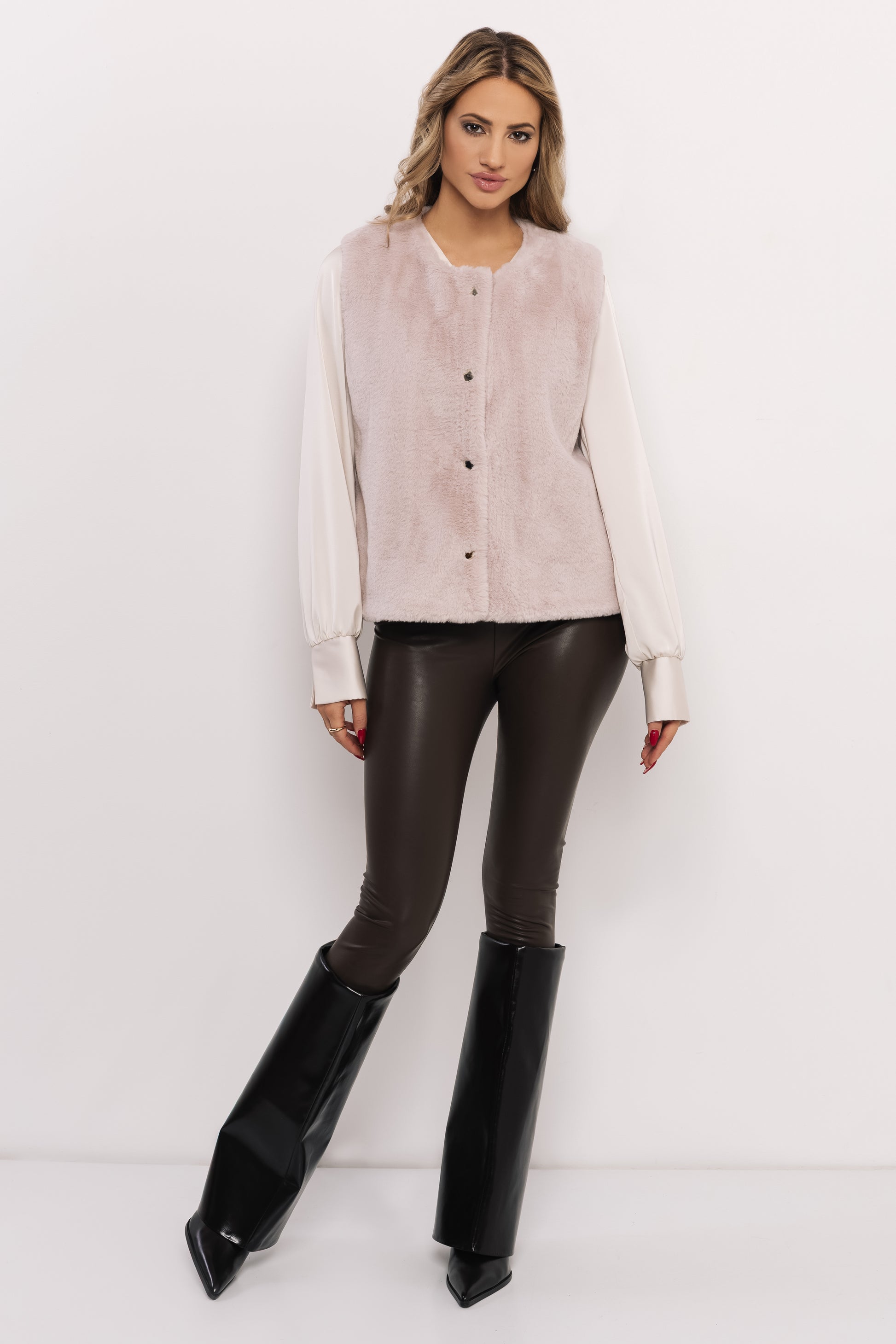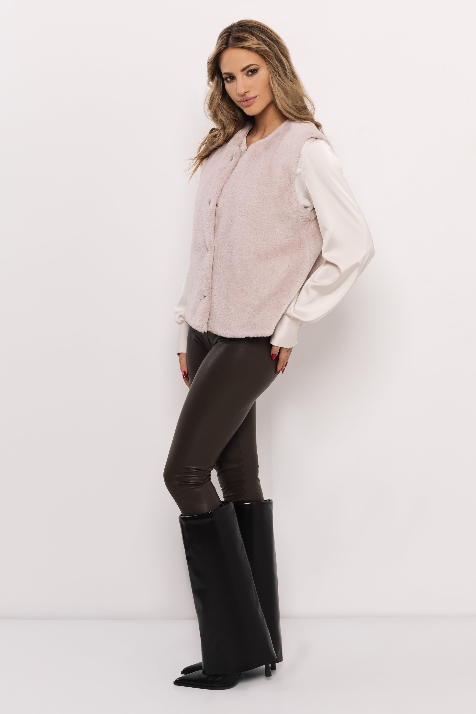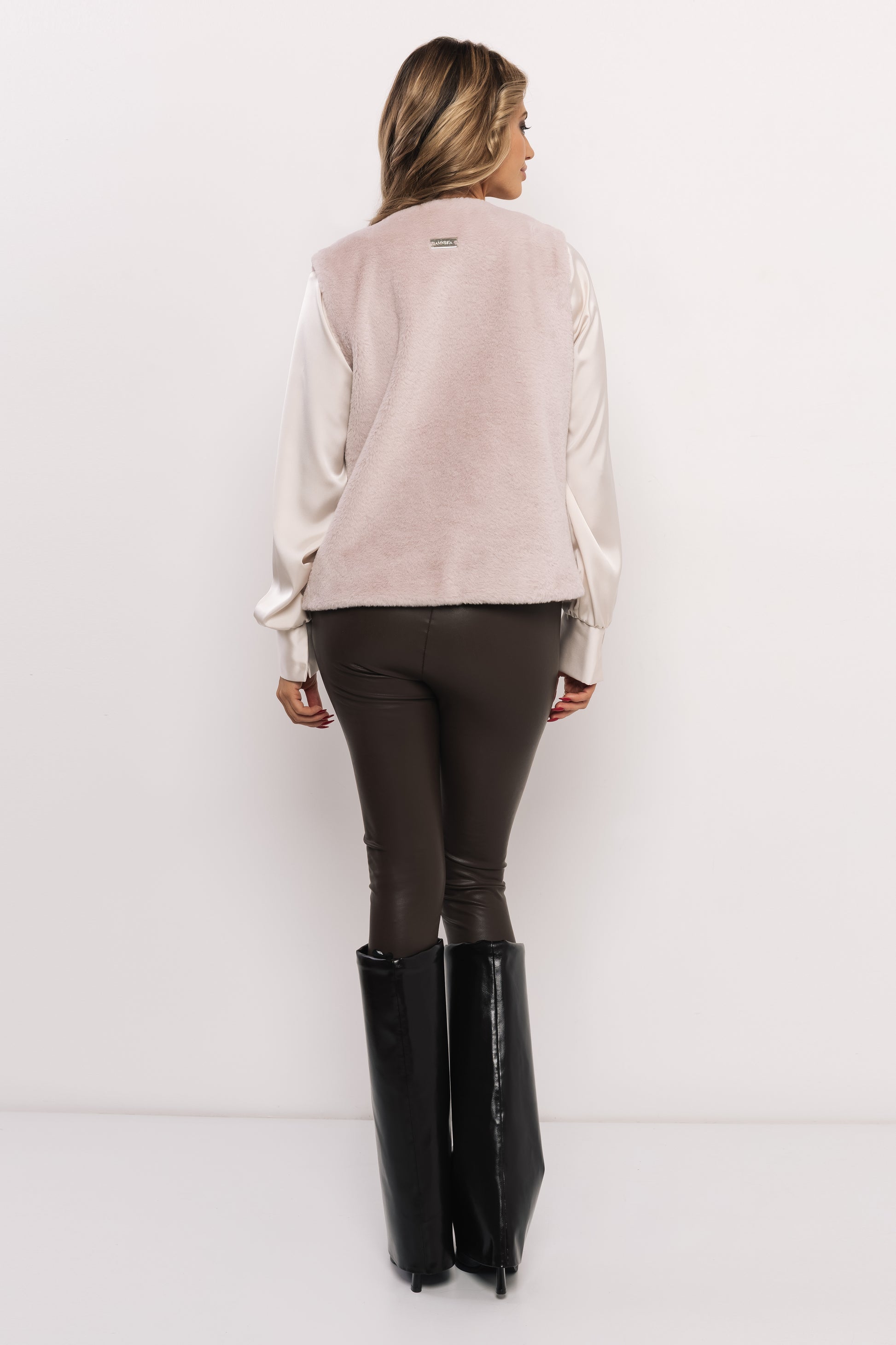 Az AMNESIA Porto mellény azoknak szól, akik szeretik a meleg és látványos, mégis komfortosan viselhető darabokat a hűvösebb napokon. A műszőrme felület finom tapintású, színei pedig jól illenek az őszi-téli ruhatár tónusaihoz. Könnyedén ráveheted ingre, garbóra vagy egy vékony kötött felsőre is. Egyméretes, fekete és rózsaszín változatban érhető el, mindkettő elegáns és jól kombinálható. Viseld bőrhatású nadrággal és csizmával egy modern, városi szetthez, vagy adj hozzá egy AMNESIA basic inget, ha letisztult, nőies hatást szeretnél. Válaszd ki kedvenc színedet az amnesia.hu webshopon, és építs rá egy igazán változatos őszi-téli ruhatárat!