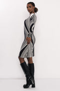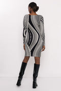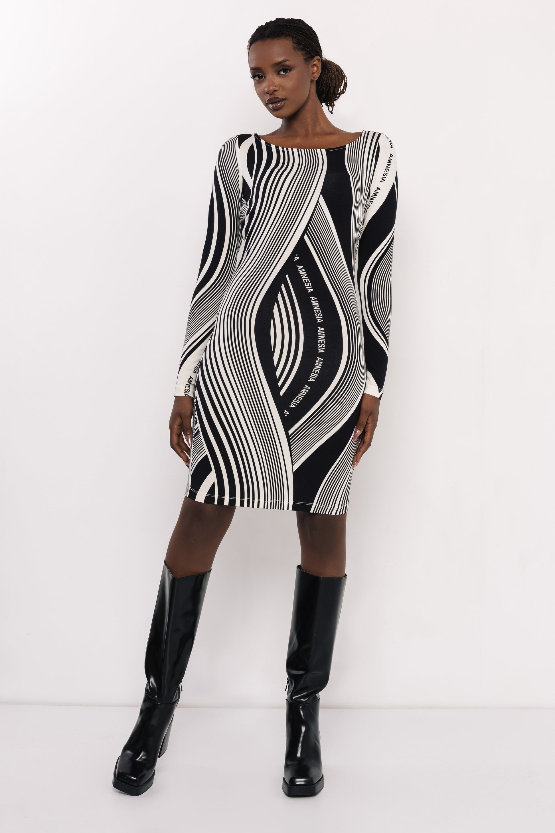 Optikai illúzió, ami életre kel: az AMNESIA Ricar ruha minden mozdulatodban erőt és magabiztosságot sugároz. A különleges, viszkóz alapanyagból készült, rugalmas és könnyed viselet elegánsan követi a vonalakat, miközben maximális komfortot nyújt. Az egyedi Optical Stripes minta, amely az AMNESIA logóval átszőve teszi igazán exkluzívvá a darabot, a kollekció egyik legerőteljesebb darabjáv válik. A hosszú ujjú, csónaknyakú fazon egyszerre modern és időtálló, igazi must-have, amely nappali szettekben és esti megjelenésben is magabiztosan megállja a helyét. Kombináld AMNESIA kiegészítőkkel, és fedezd fel, hogyan válhat a ruhatárad meghatározó elemévé ez a különleges darab! Ne hagyd ki, tedd a kosaradba az amnesia.hu webshopon, és élvezd, hogy minden szem rád szegeződik!