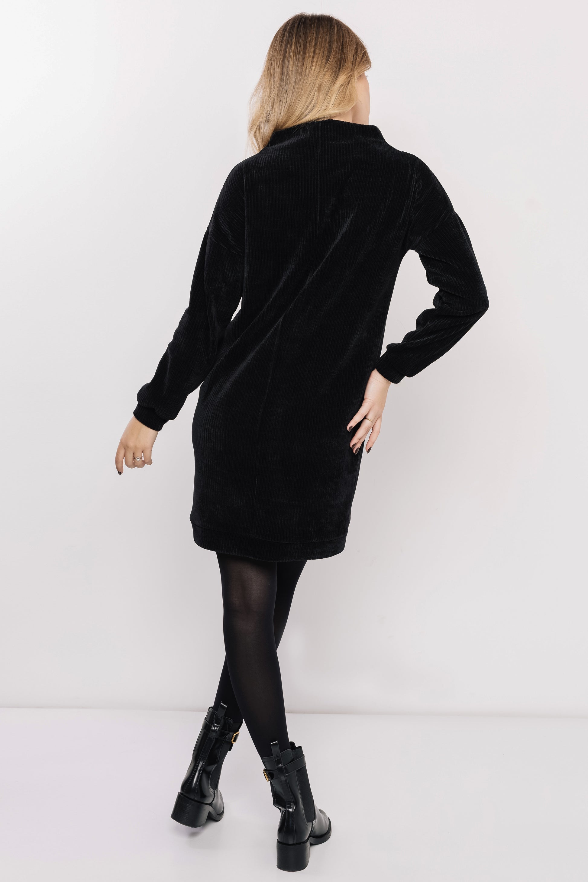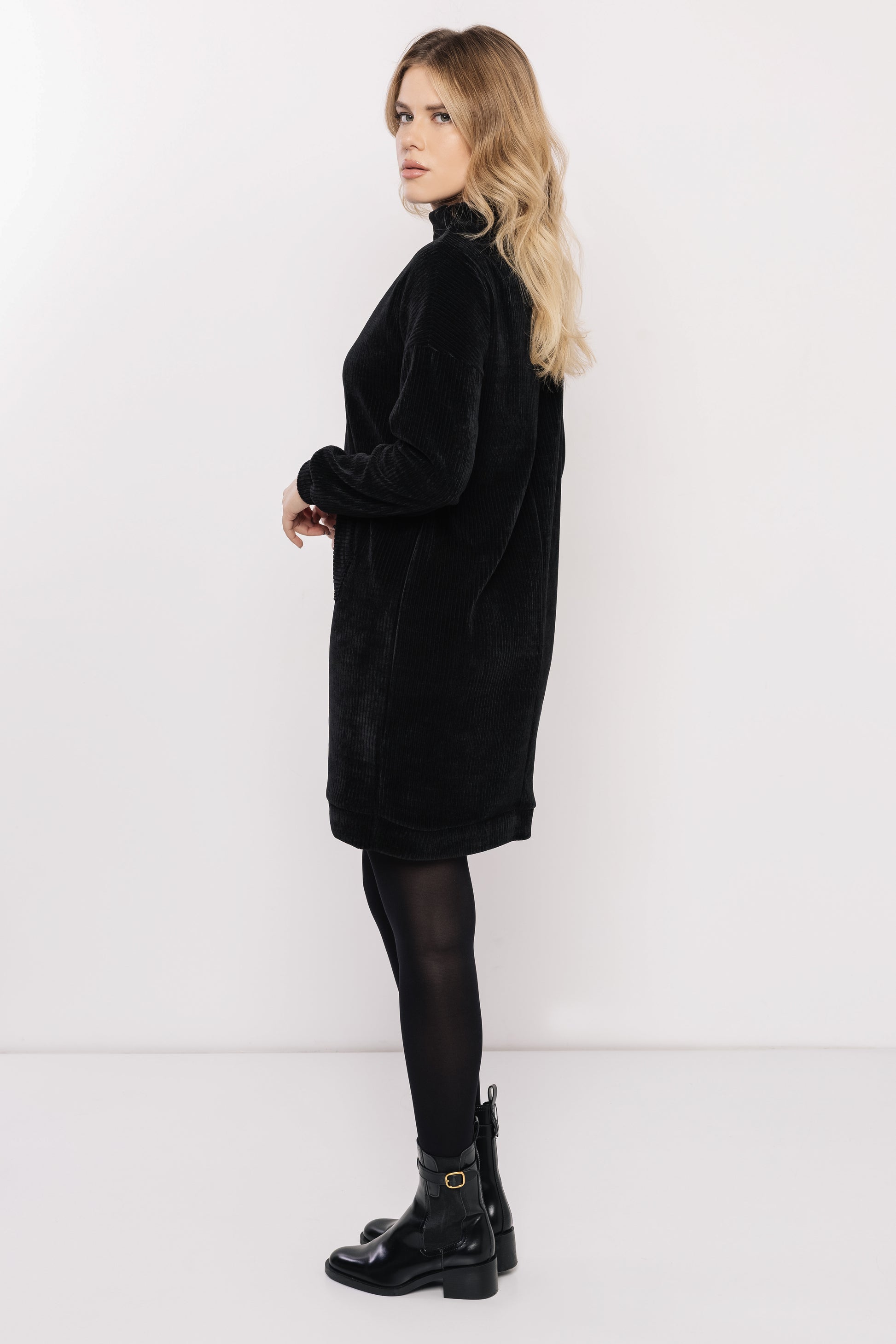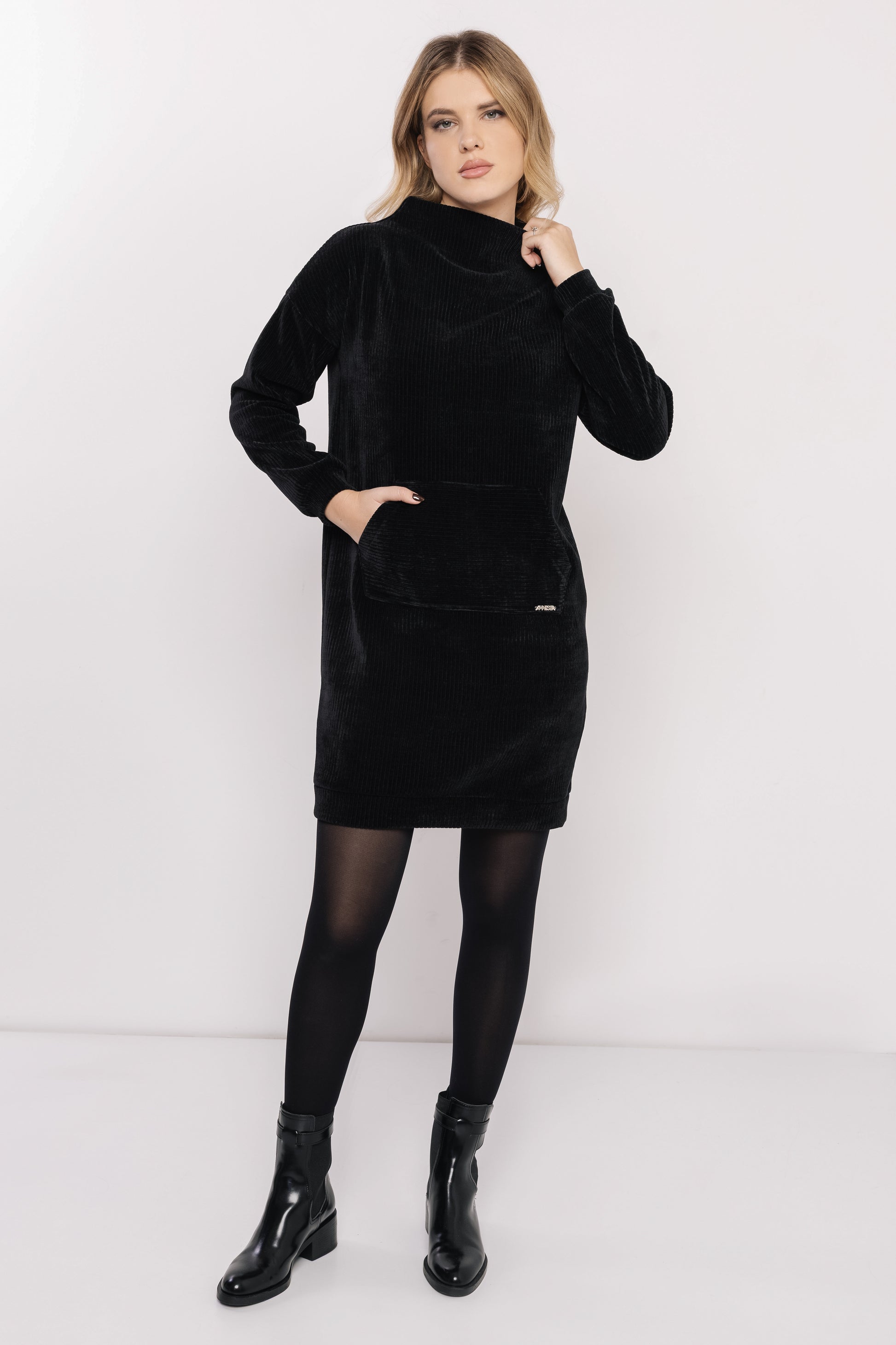 A zseníliából készült AMNESIA Volin ruha egyszerre kényelmes és látványos. Puha, selymes tapintású anyaga és a lezser fazon magasított nyakkal és kenguruzsebbel modern, laza megjelenést ad. Fekete és piros színekben elérhető, így könnyedén igazíthatod a stílusodhoz. Csizmával és övvel nőies, bakancsokkal pedig vagányabb irányba viheted. Egy ruha, amit reggeltől estig viselhetsz – tedd a kosaradba az amnesia.hu webshopon, és fedezd fel a szezon legpuhább darabját!