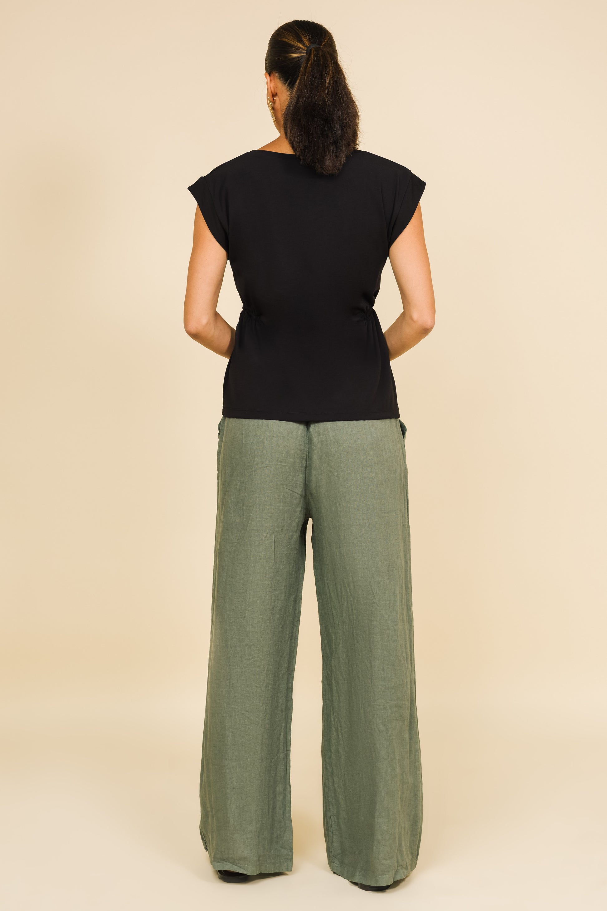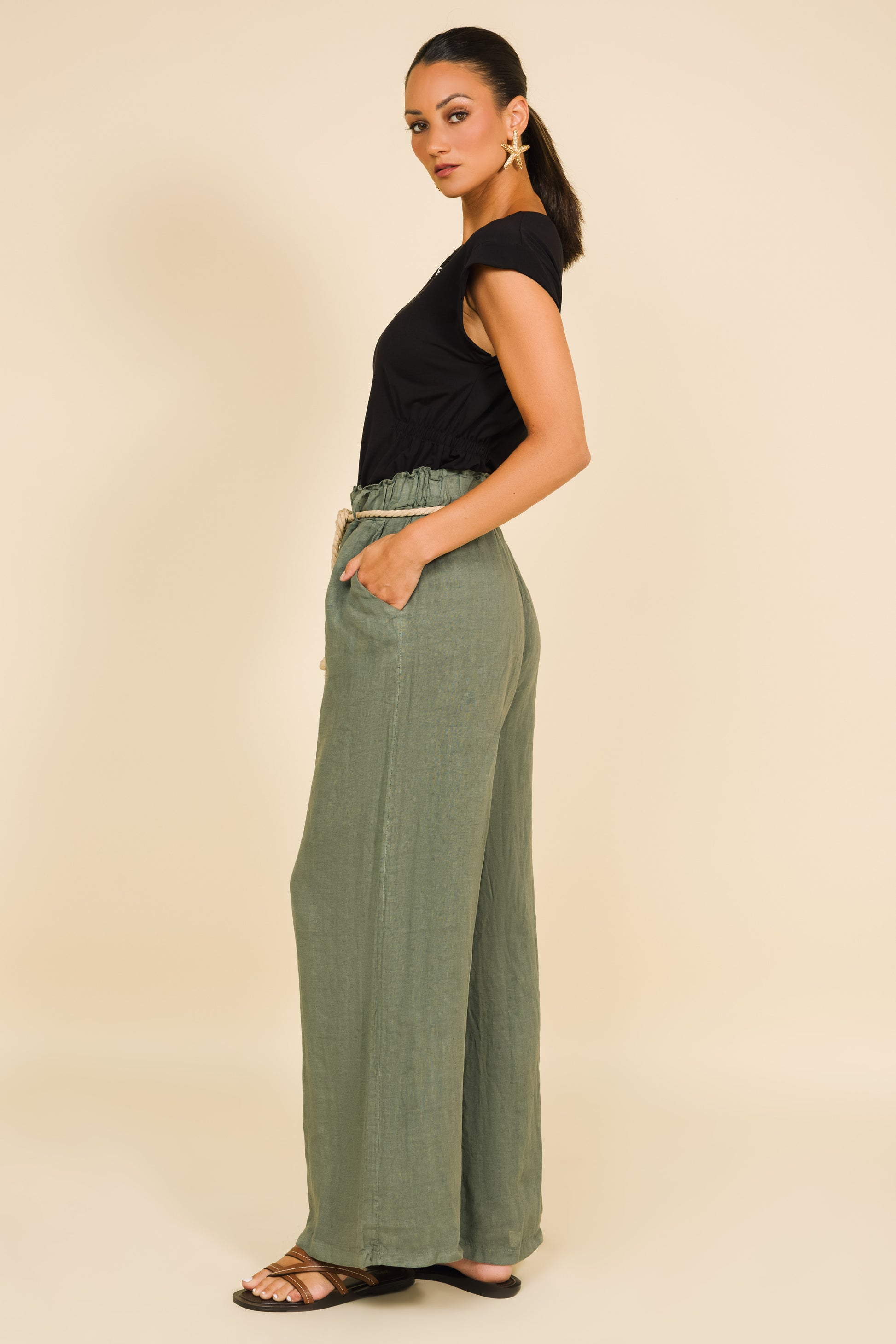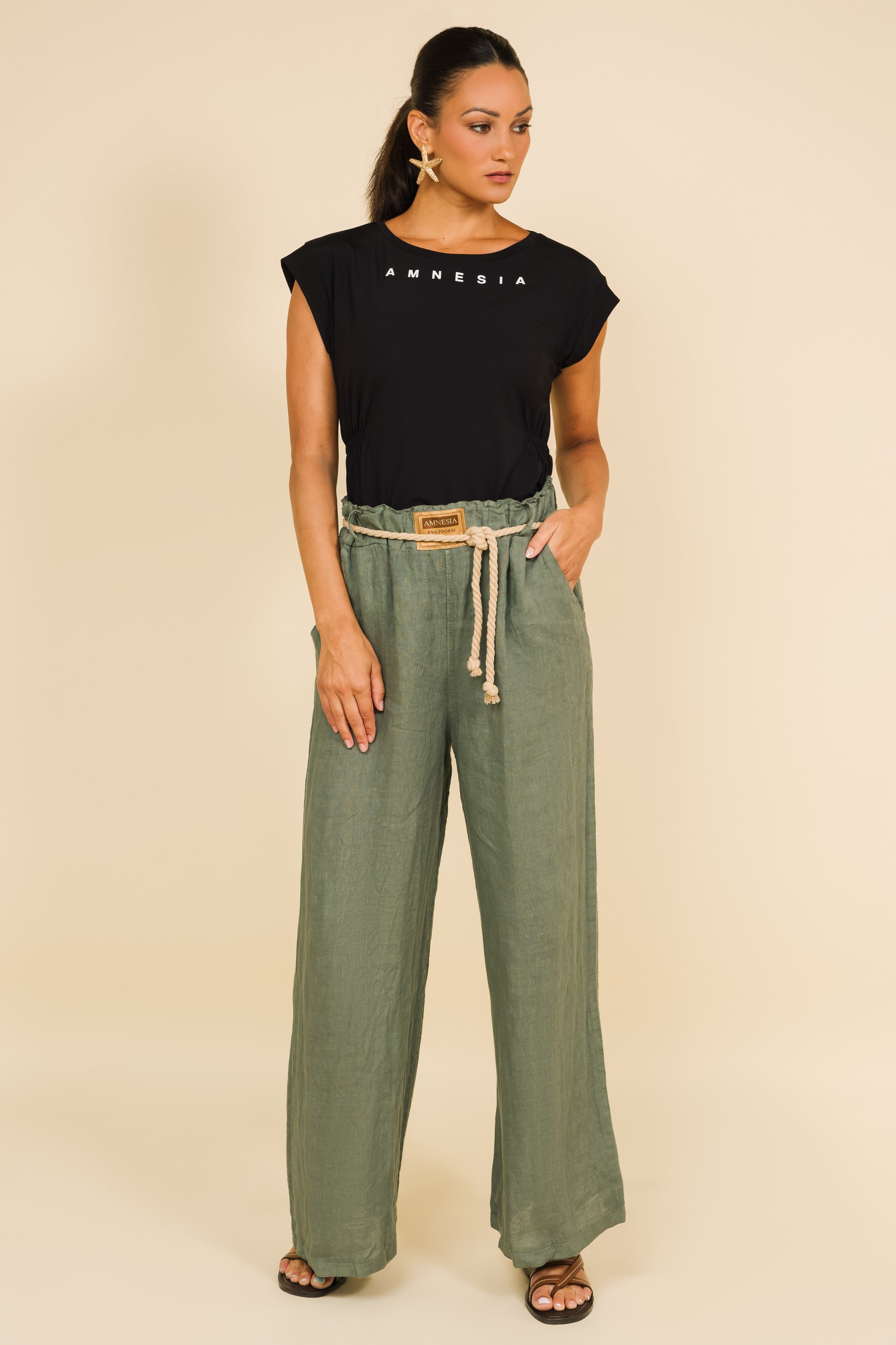 Az AMNESIA Folk nadrág könnyű len anyagból készült, amely garantálja a szellős, komfortos viseletet a forró nyári napokon. A bő, egyenes szabású szár minden mozdulatnál szabadságot enged, és könnyed, elegáns sziluettet ad. Elérhető tiszta fehérben, natúr bézsben és friss khaki árnyalatban is – ne várj tovább, add le a rendelésed az amnesia.hu-n!