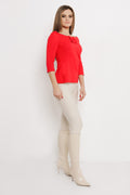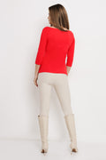 Az AMNESIA Lupe felső masnis részleteivel és letisztult vonalvezetésével könnyen beilleszthető a tavaszi AMNESIA kollekció darabjai közé. A masnis díszítés csinos hangsúlyt ad, miközben a felső összhatása visszafogott és jól kombinálható marad. Olyan felső, amely elegáns szettekben is megállja a helyét. A vékony punto anyag könnyű, rugalmas és kellemes tapintású, így egész napos viselet során is komfortos. A szabás követi a felsőtest vonalát, mozgás közben nem feszül. Egyméretes kialakításban készül, piros és fekete színben. Szoknyával és nadrággal egyaránt jól működik, a kollekció letisztult darabjaival harmonikus szettet alkot. Irodai viselethez, csajos programokra vagy hétköznapi alkalmakra is könnyen beilleszthető.