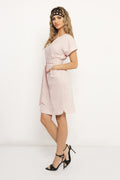 Az AMNESIA Berin ruha egy letisztult, mégis karakteres darab, amely a farmert nőies szabással ötvözi. A V-kivágás és a rövid, felhajtott ujj modern megjelenést ad, a deréknál megköthető öv pedig kiemeli a sziluettet. Puplin és könnyű farmer anyag kombinációjából készült, amely könnyed esésű és kellemes viselet. A praktikus zsebek és a letisztult vonalvezetés miatt könnyen beilleszthető a mindennapi ruhatárba. Farmerkék és bézs színben érhető el, S-M és L-XL méretben, hogy megtaláld a számodra legjobbat. Viseld magassarkúval egy elegánsabb városi megjelenéshez, vagy sportcipővel egy lazább, hétköznapi szetthez. Szerezd be az amnesia.hu webshopon, amíg elérhető!