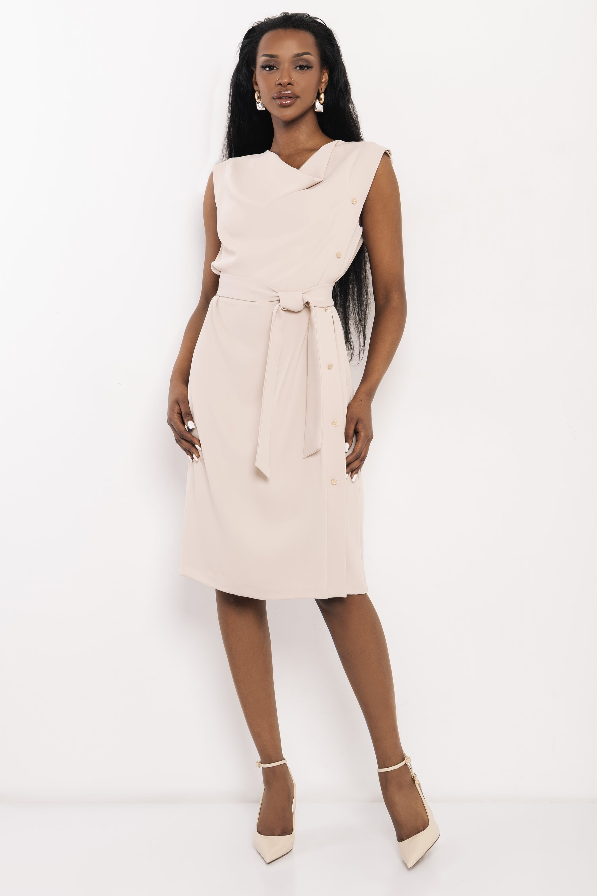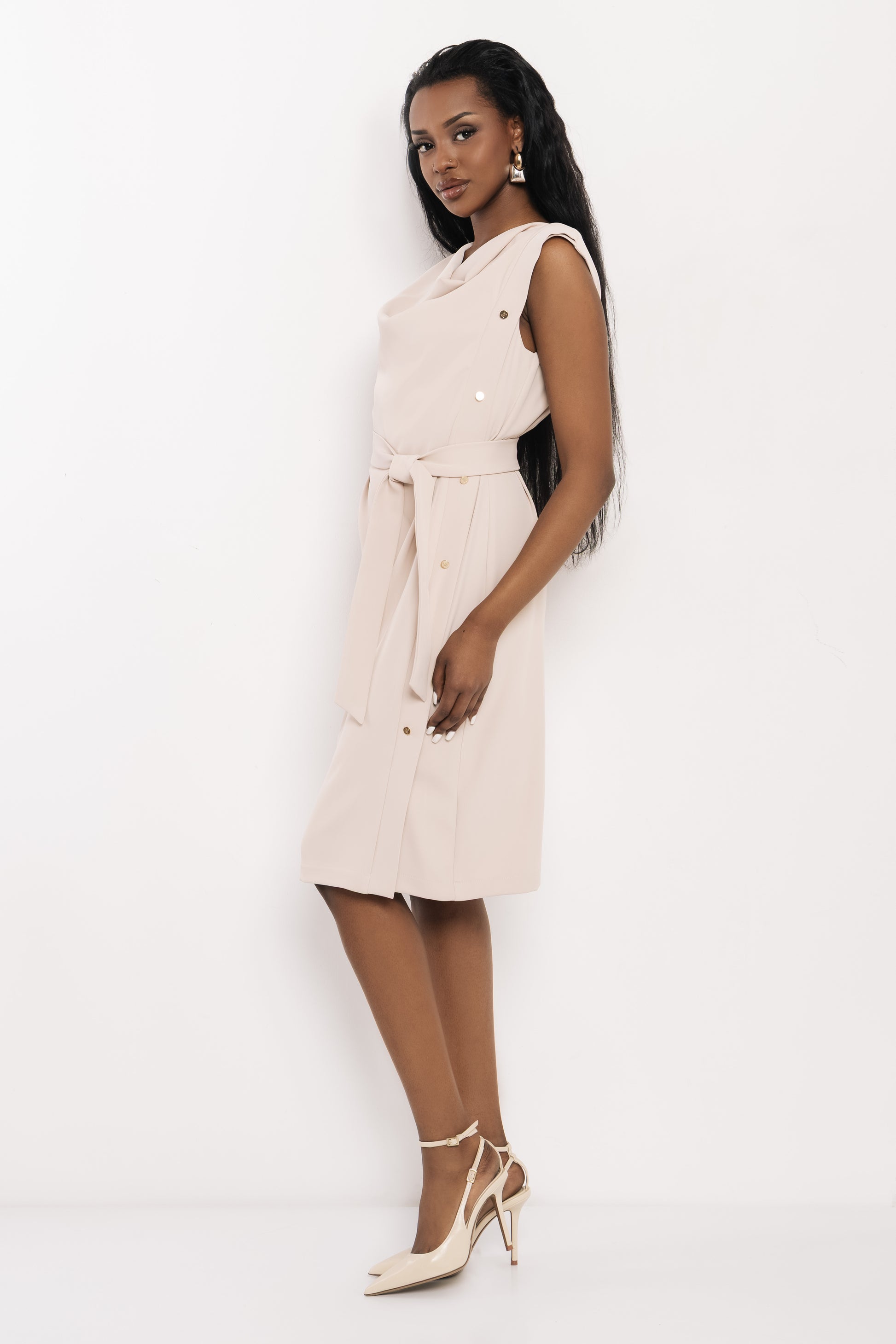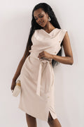 Az AMNESIA Dixi ruha egy elegáns, nőies darab, ami a különleges szabásával és finom részleteivel tűnik ki. A derekán megköthető öv szépen kiemeli az alakot, miközben a lágy esésű felsőrész kifinomult megjelenést ad. Morgen kosztüm szövete sima felületű, enyhén tartást adó és kényelmes viselet, ami jól követi a mozgást. Fango és bézs színekben, S és M méretben érhető el. Tökéletes választás alkalmakra vagy elegánsabb hétköznapokra, magassarkúval igazán nőies, de visszafogott kiegészítőkkel is könnyedén stylingolható. Szerezd be az amnesia.hu webshopon, amíg elérhető!