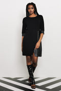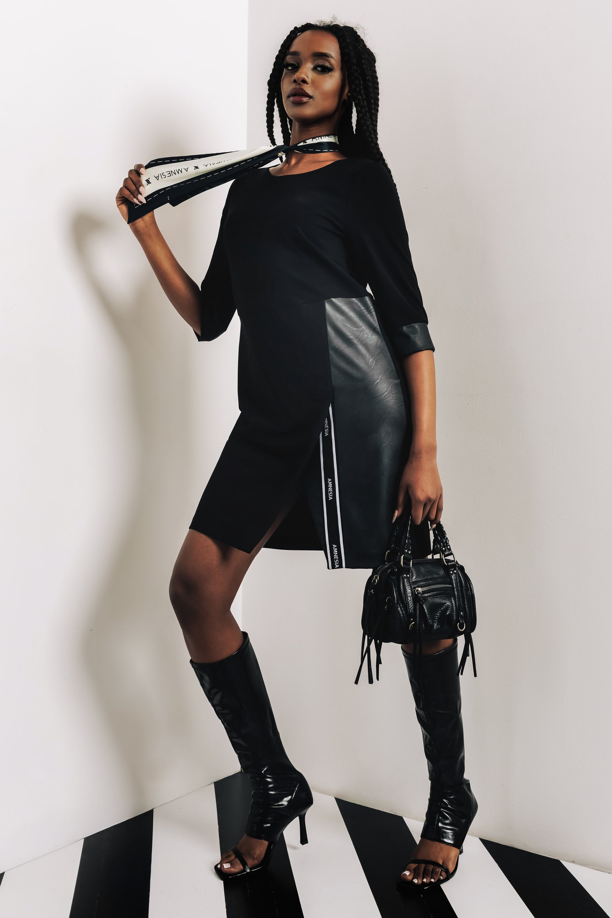 Az AMNESIA Lien ruha modern szabásával és letisztult felületével a tavaszi AMNESIA kollekció egyik karakteres darabja. Egyszerűsége miatt könnyen variálható, mégis markáns megjelenést ad, amely nem igényel túl sok kiegészítőt. Olyan ruha, amely önmagában kész szettet ad. A vékony punto anyag könnyű, rugalmas és kellemes tapintású, így egész napos viseletre is alkalmas. A fazon lágyan követi a test vonalát anélkül, hogy szorítana, mozgás közben természetesen viselkedik. S–M és L–XL méretekben készül, így több testalkatra is jól működik. Magassarkúval alkalmi, lapos cipővel pedig visszafogottabb, városi hatást kelt. A kollekció fekete darabjaival jól kombinálható, rétegezve is hordható. Ideális választás esti programokra, vacsorához vagy elegánsabb nappali megjelenéshez.