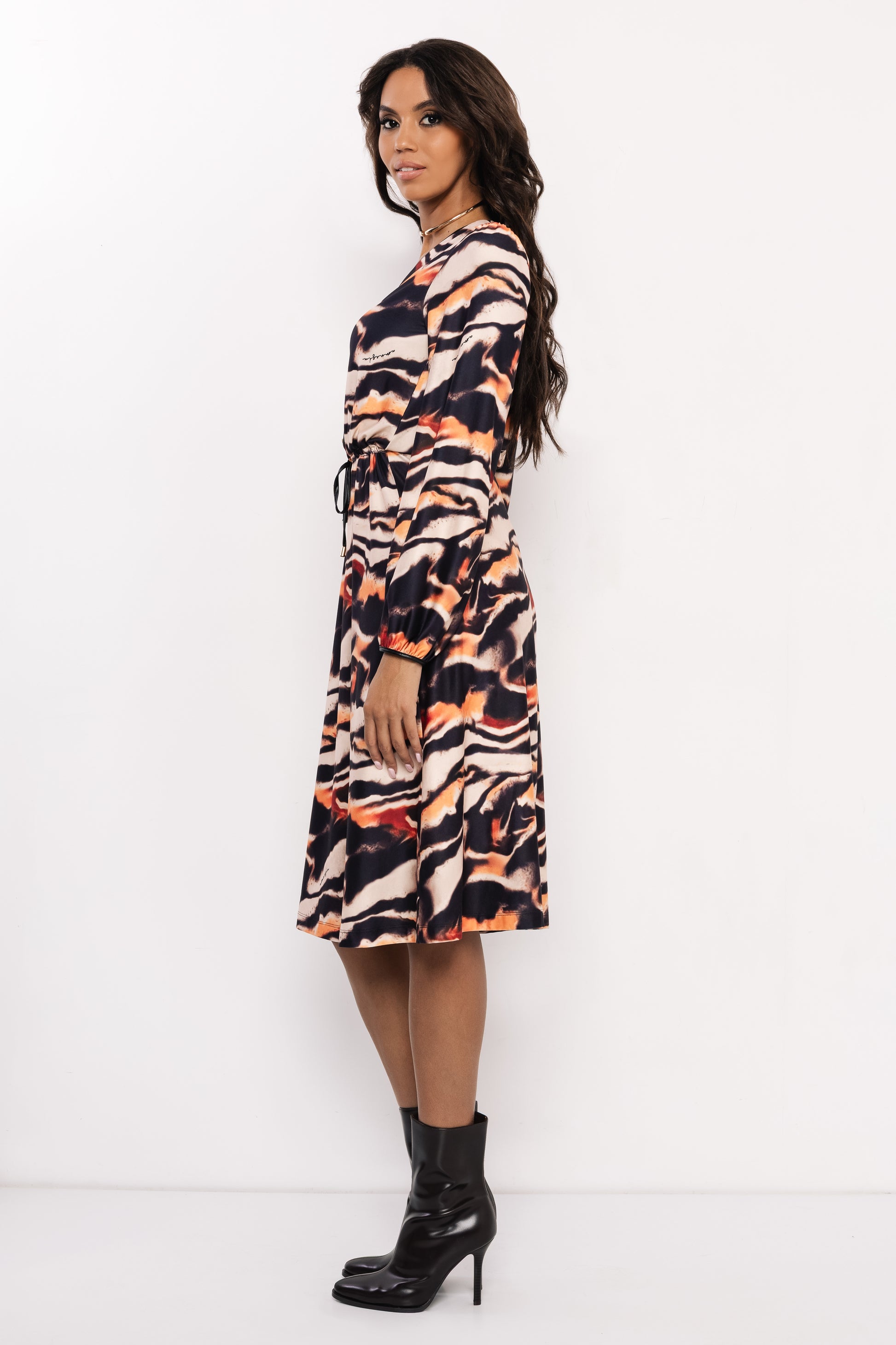 Az AMNESIA Loriana ruha igazi statement darab, amelyben egyszerre lehetsz magabiztos és különleges. A könnyed kimo anyag szép esésével követi a test vonalait, miközben kényelmes viselet marad egész nap. A V-kivágás elegánsan keretezi a dekoltázst, a gombolás és a kontrasztos szegély pedig extra részletgazdagságot ad a megjelenésnek. A derékrésznél húzózsinóros megoldás gondoskodik a nőies sziluettről, amelyet a hosszabb midi fazon tesz modernné és hordhatóvá. S-M és L-XL méretekben elérhető, így több testalkaton is előnyösen mutat. A ruha AMNESIA logóval díszített, egyedi tervezésű márvány mintás anyagból készült, amely garantáltan kitűnik a tömegből és különleges karaktert ad minden összeállításnak. Viseld magassarkú csizmával vagy bokacsizmával egy határozott, trendi szettért, párosítsd AMNESIA kabáttal elegáns alkalmakra, vagy dobd fel sportos kiegészítőkkel a hétköznapokra. Az AMNESIA Loriana ruha egyedi mintájával és sokoldalúságával minden gardrób kihagyhatatlan darabja – fedezd fel most az amnesia.hu webshopon, és engedd, hogy veled együtt ragyogjon!