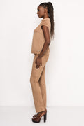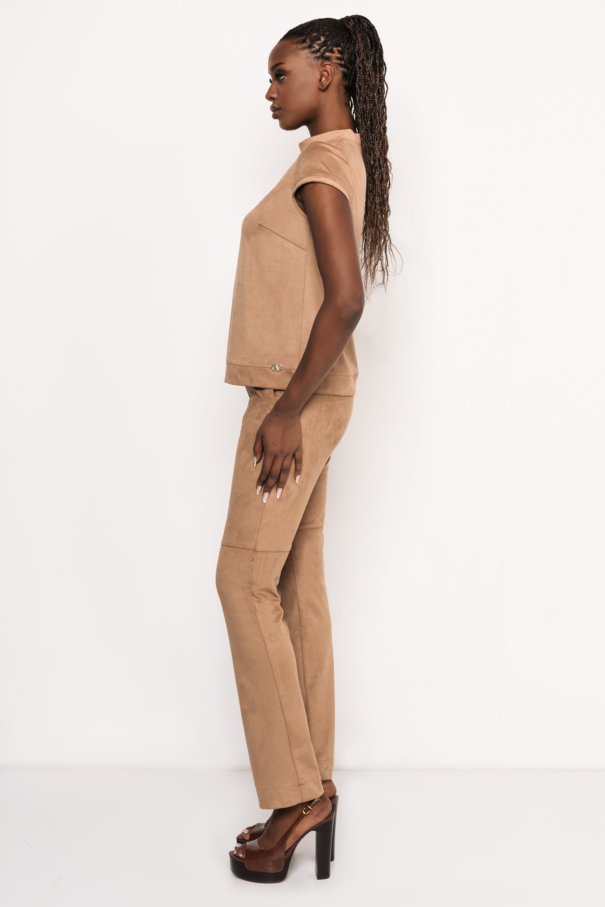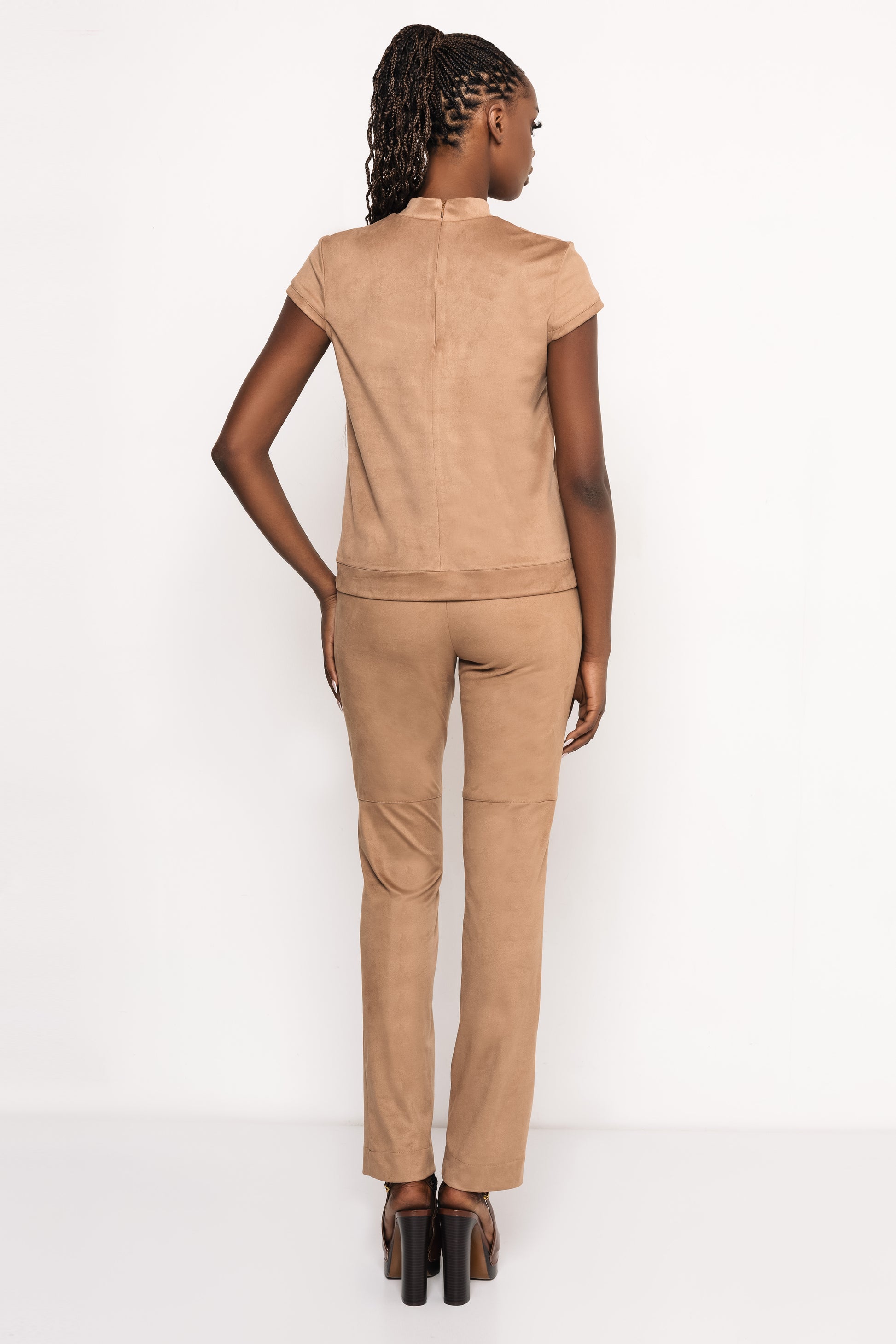 Az AMNESIA Angbo felső a letisztult, modern minimalizmust képviseli gyönyörű fazonjával. A finom tapintású velúr anyag különleges komfortot nyújt, miközben elegáns, mégis hétköznapi viseletként is tökéletesen megállja a helyét. A rövid ujjas szabás frissességet visz a megjelenésbe, a finom állógallér pedig kifinomult részletként ad különleges karaktert a darabnak. Egyméretben elérhető, így rugalmasan idomul a legtöbb alkathoz, a klasszikus camel árnyalat pedig sokoldalú választássá teszi. A letisztult vonalvezetés miatt könnyen kombinálható, akár elegánsabb, akár lezserebb stílusban szeretnéd viselni. Az AMNESIA Angbo felsőt párosítsd az AMNESIA Fitto nadrággal, amely a képen is látható – együtt stílusos, harmonikus szettet alkotnak, amely bármilyen alkalomra magabiztos megjelenést biztosít. Fedezd fel az amnesia.hu webshopon, amíg elérhető!