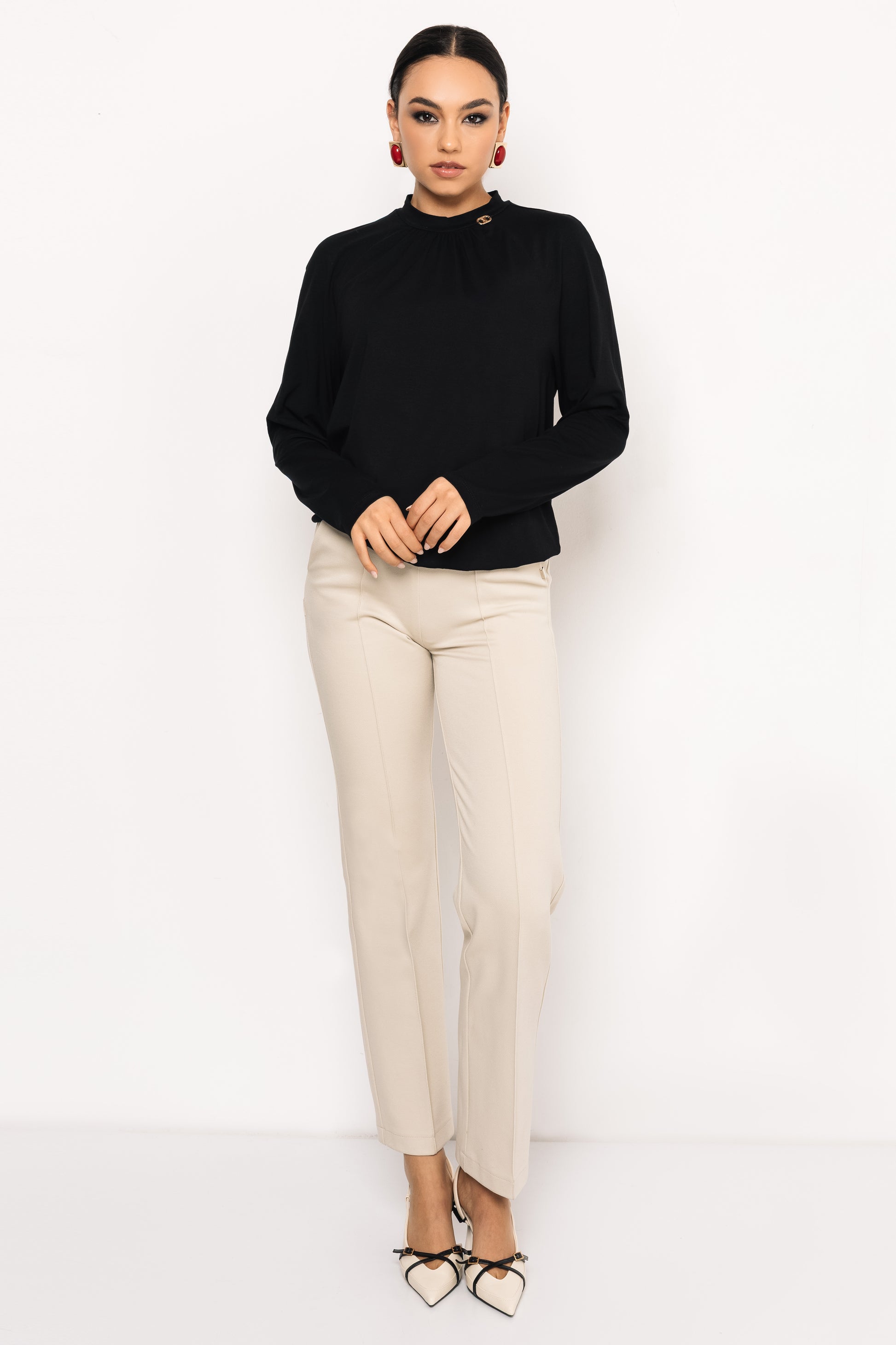 Az AMNESIA Rimm felső egy igazi alapdarab, amely elegáns egyszerűségével és letisztult vonalvezetésével teszi különlegessé a mindennapi öltözködést. Lágyan eső, finom tapintású viszkózból készült, amely természetes légáteresztő tulajdonságainak köszönhetően kellemes viselet egész nap. A raglánujjas kialakítás és a nyakkivágásnál finoman berakott ráncolás nőies, könnyed esést kölcsönöz a felsőnek, miközben szabad mozgást biztosít. Egyméretes szabása rugalmasan illeszkedik több testalkatra, így könnyen illeszthető minden gardróbba. A háromféle árnyalat – ekrü, fangó és fekete – sokoldalú kombinálhatóságot kínál, legyen szó elegánsabb összeállításokról vagy hétköznapi, lezserebb szettekről. A letisztult, de részletgazdag megoldások révén a Rimm felső önmagában is stílusos darab, de rétegezve is tökéletes. A teljes szett hatásért viseld az AMNESIA nadrágokkal, amelyekkel harmonikus, modern és mégis kényelmes megjelenést biztosítanak. Szerezd be az AMNESIA Rimm felsőt az amnesia.hu webshopon, amíg elérhető!