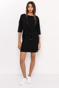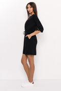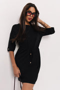 Az AMNESIA Tassy tunika a lezser elegancia egyik legjobb példája. Vékony punto anyagból készült, amely könnyű, rugalmas és kellemes tapintású, így ideális választás mindennapi viseletre. A derékrésznél található megkötő segítségével a derék hangsúlyozható: lazán hagyva kényelmes és bohém, szorosabbra húzva pedig nőiesebb, karcsúsított hatást kelt. Az oliva zöld és fekete színekben elérhető tunika modern, mégis időtlen darab. Háromnegyedes ujját logós pánt díszíti, amely praktikus és stílusos részlet egyben. Az egyméretes kialakítás sokféle testalkathoz illeszkedik, a közepes hossz pedig sokoldalúan kombinálható – viselheted önmagában, leggingsszel vagy akár szűk nadrággal is. Frissítsd fel ruhatárad ezzel a praktikus, trendi tunikával az amnesia.hu webshopban!
