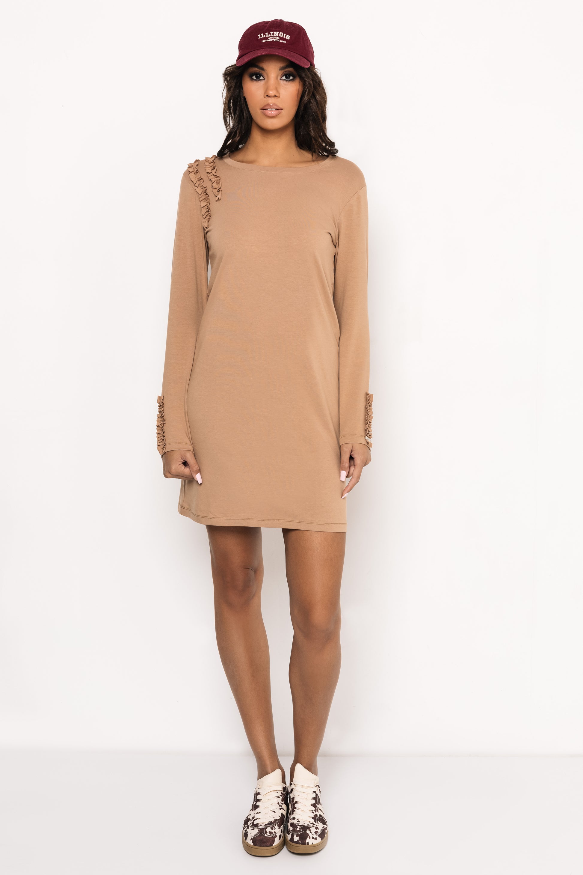 Az AMNESIA Vigo ruha igazi alapdarab, amely a sportos és nőies stílust ötvözi. Pamut anyaga könnyed viseletet biztosít, miközben a letisztult szabás tökéletes választássá teszi a hétköznapokra. A ruha különlegességét a vállon és az ujjak végén található finom ráncolt díszítés adja, amely játékos, mégis visszafogott részletként emeli ki a darabot. Egyenes vonalvezetése univerzális megoldás, amely többféle alkaton is szépen mutat, az egyméretes fazon pedig biztosítja a kényelmes illeszkedést. Camel és fekete színekben érhető el, így könnyen kombinálható sportos cipőkkel vagy elegáns kiegészítőkkel is. Szerezd be az AMNESIA Vigo ruhát az amnesia.hu webshopon, amíg elérhető!