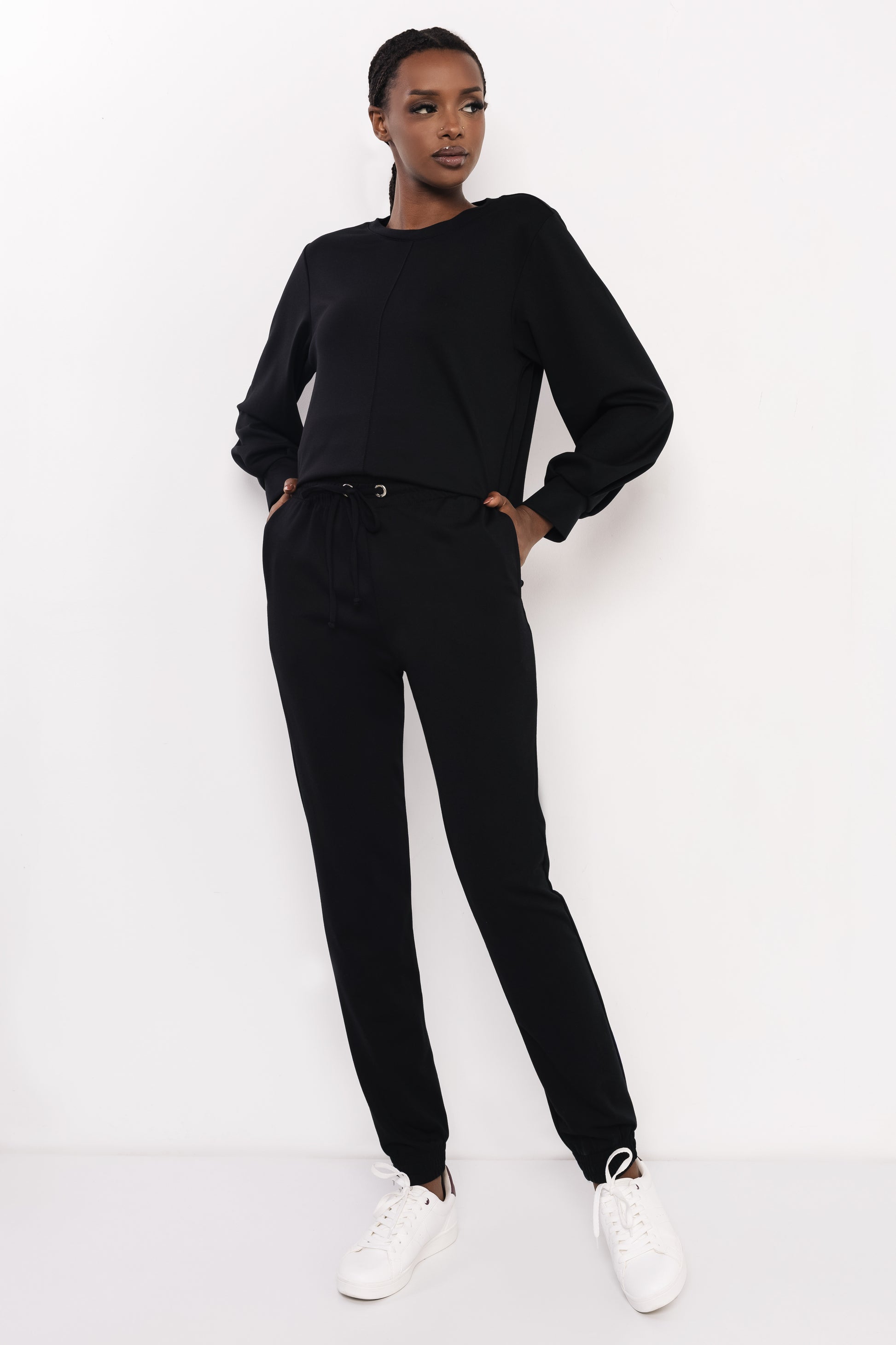 Könnyed, sportos és mégis nőies: ez az AMNESIA Fimin jogging nadrág. A punto anyag rugalmas tartást ad, amely egész nap komfortos viseletet biztosít, miközben szépen követi a vonalakat. Magasított derékrésze állítható húzózsinórral készült, amely praktikus és alakot hangsúlyozó megoldás, a szűkített szár pedig sportosan modern karaktert kölcsönöz. S, M, L és XL méretben, fekete, ekrü és fuxia színekben érhető el, így mindenki megtalálhatja a hozzá illőt. A hátoldalon elhelyezett, logóval díszített zseb és a letisztult szabás apró, de stílusos részletekkel emelik ki a nadrágot a klasszikus melegítőnadrágok közül. Mindennapi szetted alapdarabja lehet, amely egyaránt illik a lezser, sportos vagy éppen nőiesebb összeállításokhoz. Viseld az AMNESIA Belle jogging felsővel, ahogy a képen is látható, és alakíts ki teljes, trendi szettet! Ha szeretnéd feldobni a hétköznapjaidat egy stílusos és kényelmes nadrággal, az AMNESIA Fimin jogging nadrág a legjobb választás – rendeld meg most az amnesia.hu webshopon!
