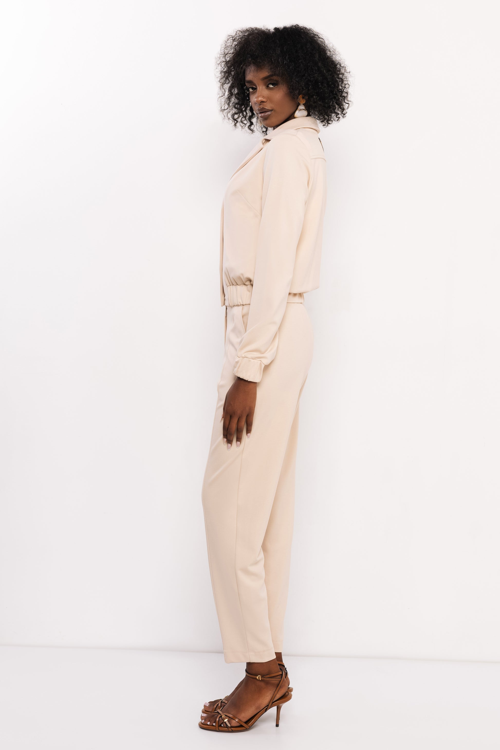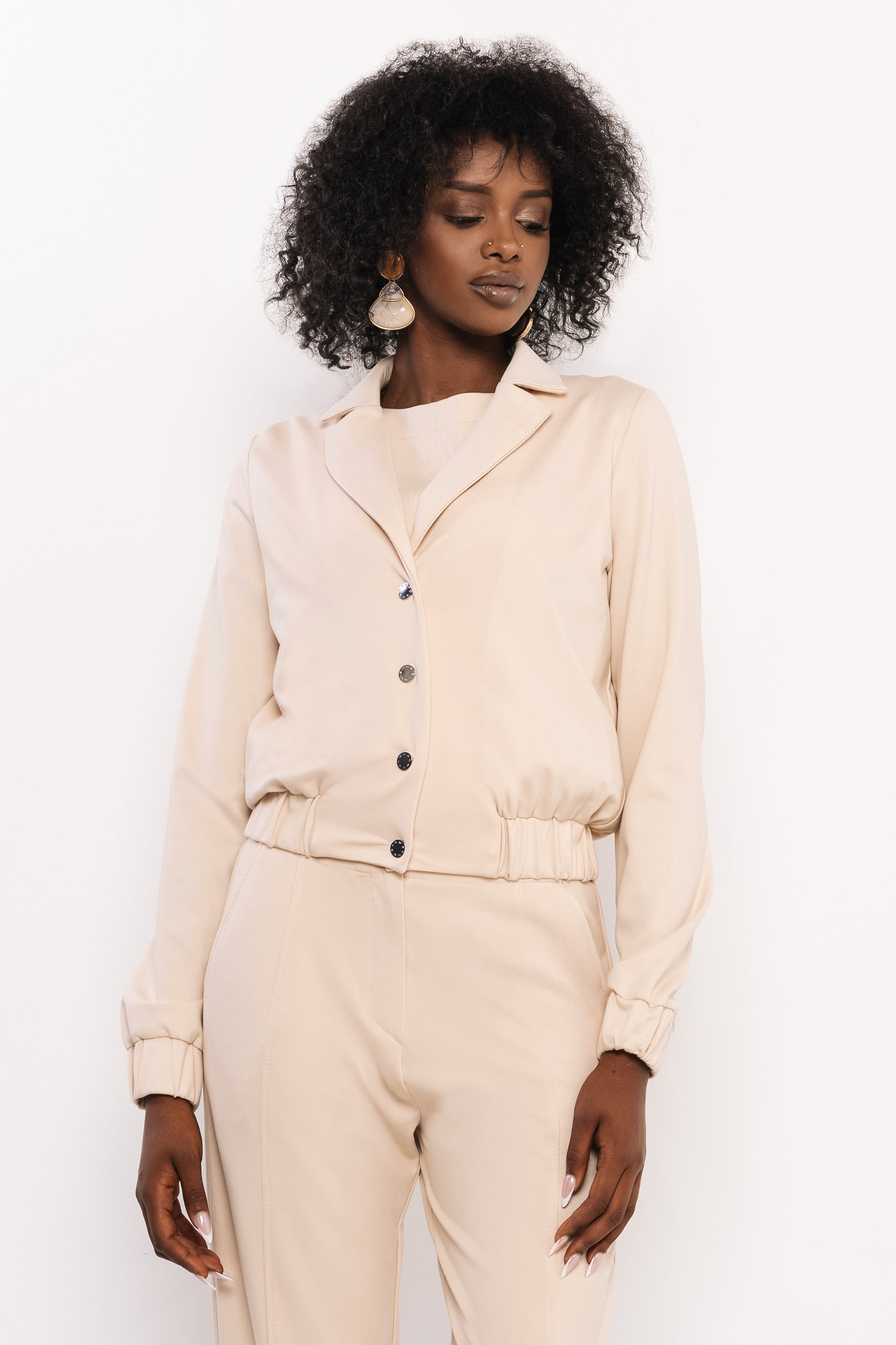 Az AMNESIA Oscar dzseki a modern, városi stílus egyik kulcsdarabja. Punto anyagból készült, amely rugalmas és tartós, így kényelmes viseletet biztosít egész nap. Klasszikus fazonját a gallér és a gombos záródás teszi elegánsan letisztulttá, míg a derekán található gumírozás kiemeli a nőies sziluettet és praktikus illeszkedést ad. A bézs és fekete színben elérhető dzseki könnyedén kombinálható sportos vagy elegáns darabokkal, így minden alkalomra ideális választás. A hátoldalán elhelyezett, különleges AMNESIA logós díszítés prémium részlet, amely egyedivé teszi ezt a klasszikus darabot. Elérhető S, M, L és XL méretben, így mindenki megtalálhatja a számára tökéletes szabást. Rendeld meg egyszerűen az amnesia.hu webshopból!
