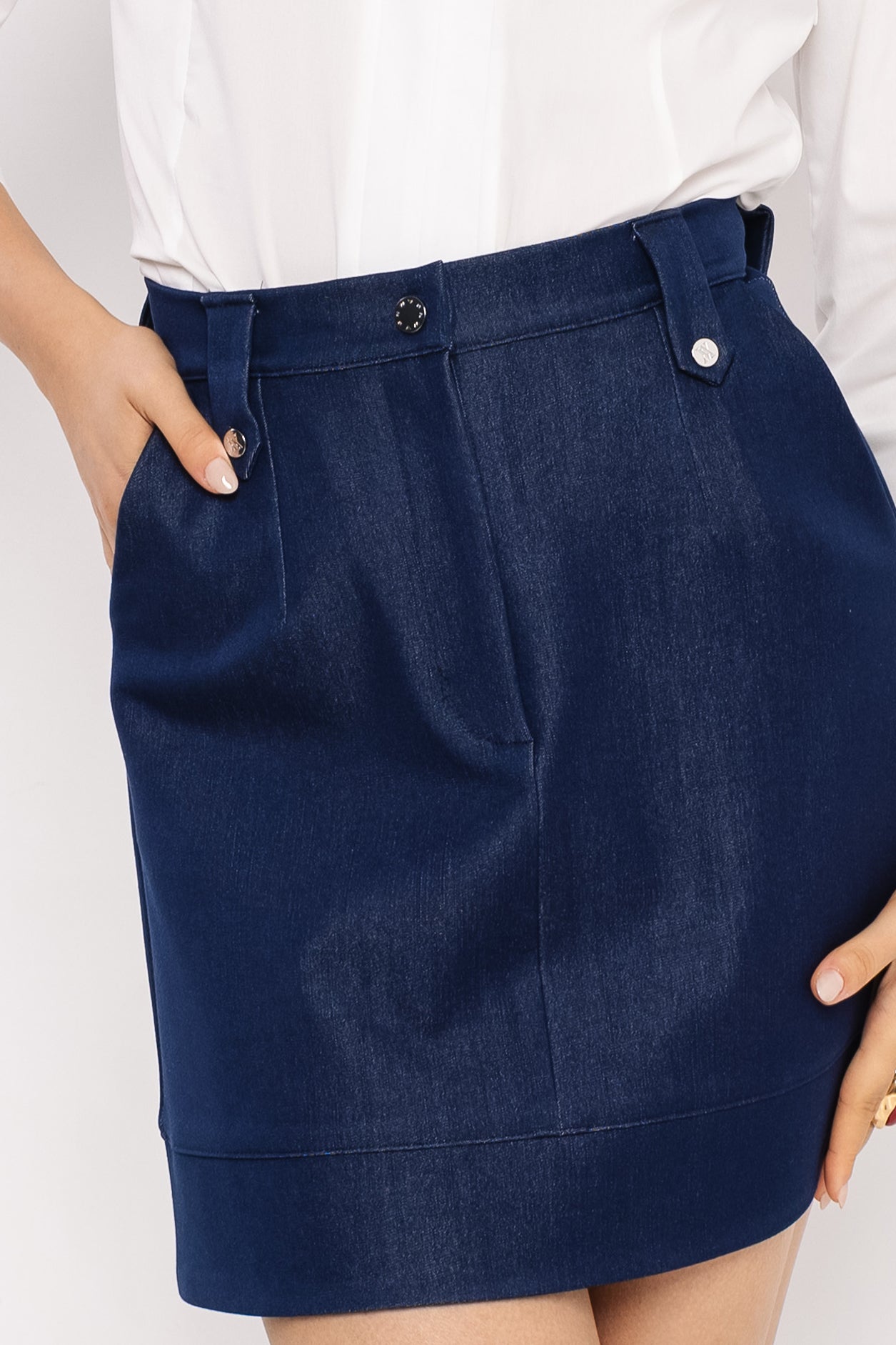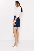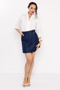 Az AMNESIA Londi szoknya a farmer nőies, modern oldalát mutatja meg. Farmerkék árnyalata időtlen és sokoldalú, amely könnyedén kombinálható elegáns vagy hétköznapi darabokkal. A derékpánt övbújtatóval biztosítja a kényelmes illeszkedést, míg a rövid fazon lendületes, magabiztos megjelenést kölcsönöz. Letisztult vonalvezetése kiemeli a szabás eleganciáját, a praktikus zsebek pedig funkcionális részletekkel gazdagítják a darabot. Egy fehér blúzzal párosítva klasszikus irodai szettet alkot, míg pólóval vagy crop toppal lazább, hétköznapi viseletként működik. Rendeld meg egyszerűen az amnesia.hu webshopból!
