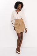 Az AMNESIA Orla szoknya a letisztult elegancia és a nőies részletek találkozása. Különleges twist anyaga lágy textillel és kifinomult megjelenéssel ruházza fel, míg a derékrész finom ráncolása és az oldalán elhelyezett AMNESIA logó teszi igazán egyedivé. Rövidebb fazonja kiemeli a lábakat, a klasszikus vonalvezetés pedig időtlen stílust sugall. A fekete és caramel színekben elérhető Orla szoknya két méretváltozatban (S-M és L-XL) készült, így könnyedén beilleszthető bármely gardróbba. Egyaránt tökéletes választás mindennapi elegáns szettekhez vagy különleges alkalmakra. Viseld az AMNESIA Meshi felsővel, a letisztult Agro toppal vagy a modern Dejen felsővel kombinálva, és alkoss változatos, stílusos összeállításokat. Találd meg kedvenc szetted az amnesia.hu webshopban!