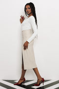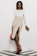 Az AMNESIA Azira body letisztult szabásával és finom részleteivel nőies, elegáns alapdarab. Az ekrü szín letisztult, friss hatást ad, miközben könnyen kombinálható a kollekció sötétebb darabjaival is. Olyan felső, amely szép vonalakat mutat, és rendezett összhatást ad egy teljes szettnek. Polyamid anyagból készült, amely finom tapintású, rugalmas és kellemes viselet. Egyméretes kialakítása miatt több alkaton is jól mutat, a szabás finoman simul a testhez anélkül, hogy feszülne. A fazon biztos tartást ad, a hosszú ujjú megoldás pedig harmonikus megjelenést eredményez. Kifejezetten jól működik magas derekú nadrágokkal és szoknyákkal, például az Ewgar nadrággal vagy a kollekció világos tónusú darabjaival. Ideális választás irodába, elegánsabb nappali programokra vagy csajos esti alkalmakra is.
