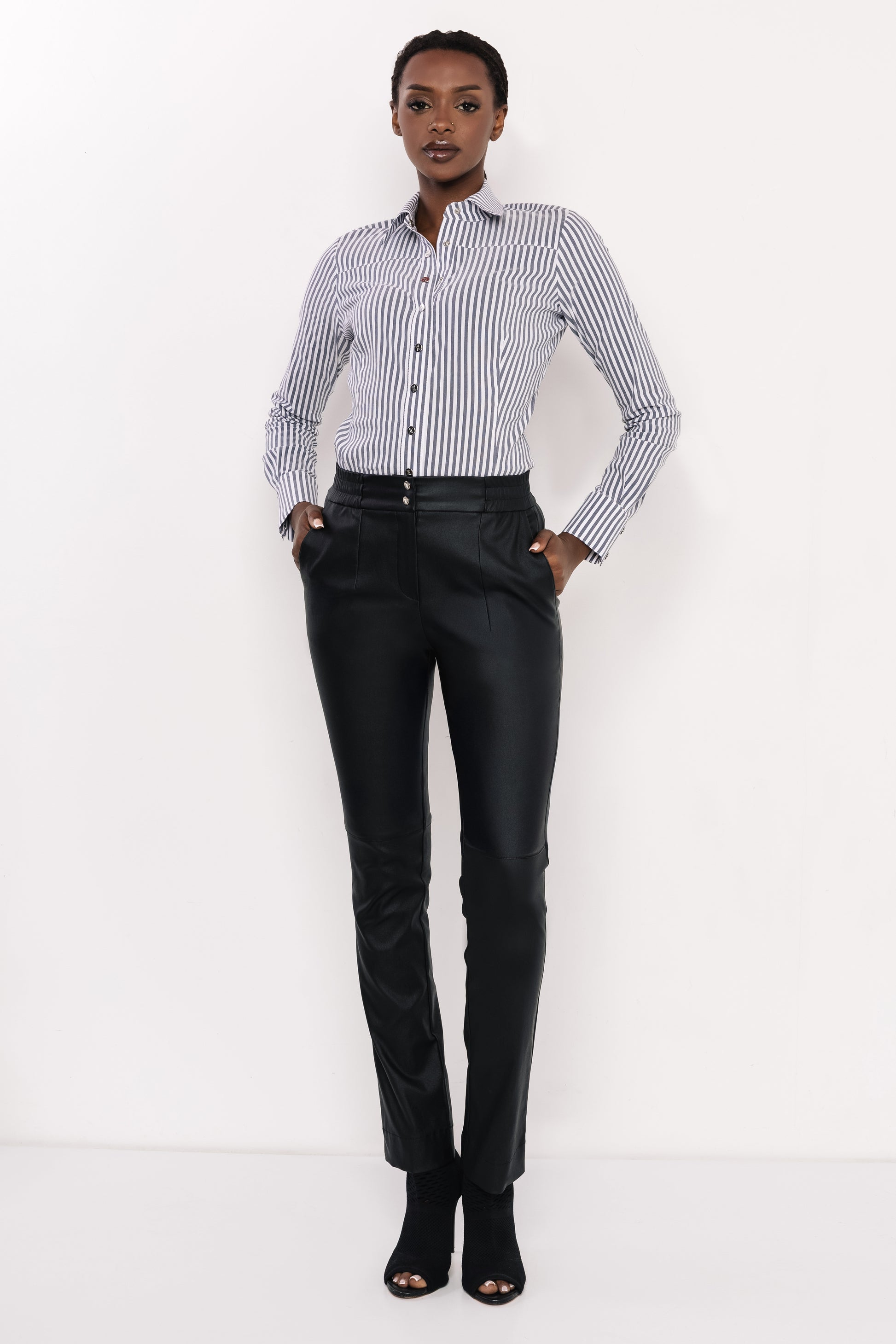 Az AMNESIA Eskelina body az elegáns alapdarabok modern újraértelmezése. A finom puplin anyag légiesen könnyű, miközben szépen tartja a formát, így biztosítva a mindig kifinomult megjelenést. Klasszikus inggallérja és gombolópántja az irodai stílus letisztultságát idézi, míg a testhez simuló fazon nőies vonalakat emel ki, tökéletes egyensúlyt teremtve a kényelem és a sikk között. A csíkos minta optikailag nyújtja az alakot, és friss dinamizmust ad a darabnak. A gondosan kidolgozott részletek – például a karcsúsító szabásvonalak – biztosítják, hogy a body egyszerre legyen praktikus és stílusos. A klasszikus inghatás miatt sokoldalúan kombinálható, és a szezon bármely alkalmi vagy hétköznapi szettjének alapját adhatja. Stylingban szinte végtelen lehetőséget rejt: párosítsd elegáns AMNESIA nadrágokkal a letisztult irodai megjelenésért, viseld egyenes szabású szoknyával nőiesebb hatásért, vagy dobj rá egy vagány bőrdzsekit a modern városi stílus kedvéért. Az AMNESIA Eskelina body igazi gardrób-alapdarab, amely mindig magabiztos kisugárzást biztosít – kattints az amnesia.hu webshopra, és tedd a mindennapjaid részévé ezt az időtlen darabot!