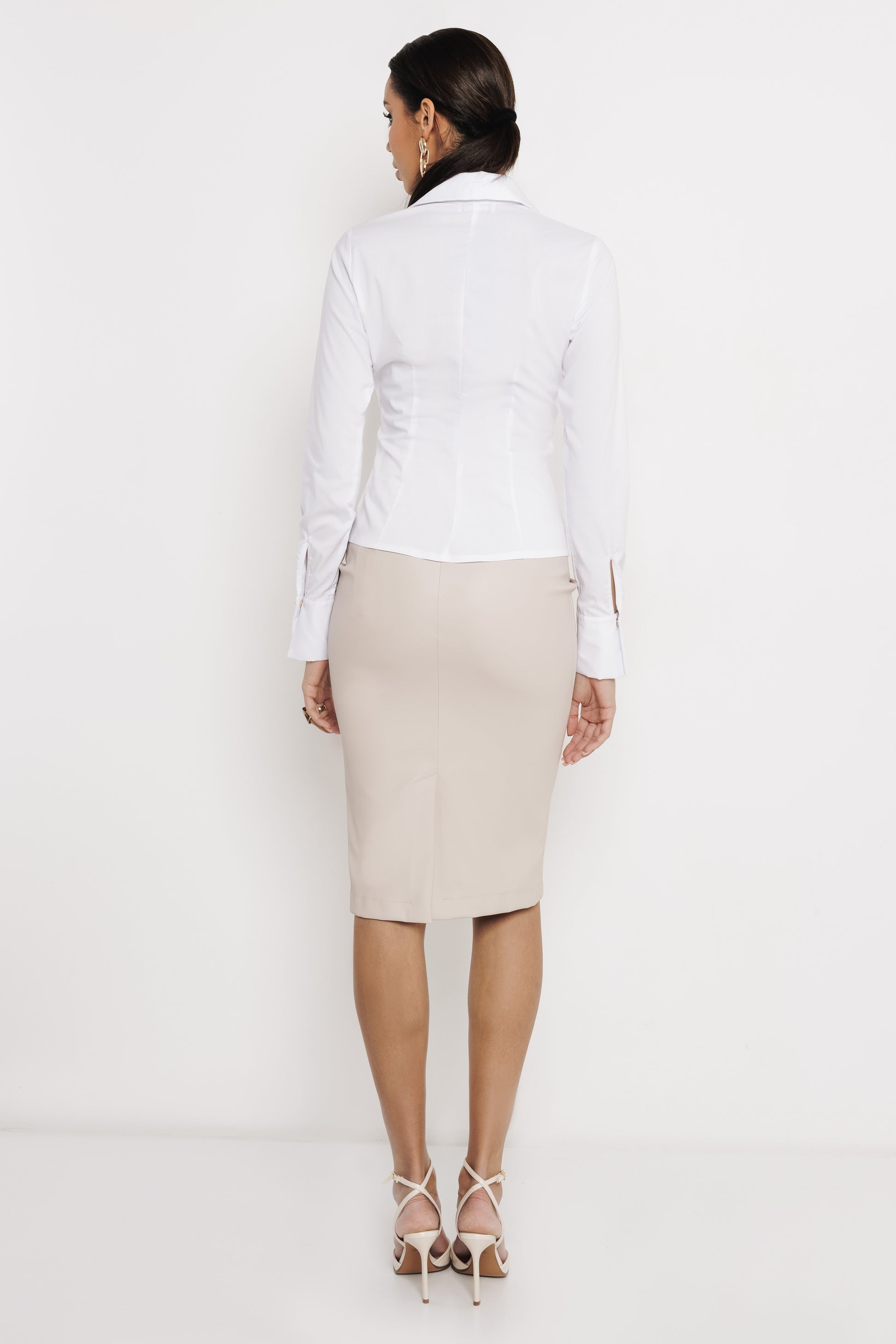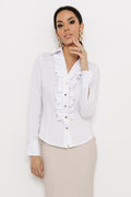 Az AMNESIA Airbon blúz friss, nőies darab, amely feldobja a klasszikus szetteket. A fehér és világoskék árnyalat tiszta, elegáns hatást kelt, a fodros díszítés pedig különlegessé teszi anélkül, hogy túlzó lenne. Ideális választás, ha szeretnél egy picit több karaktert vinni az irodai szettjeidbe. Puplin anyaga tartást ad, mégis kényelmes viselet. Gombos kialakítása klasszikus, a mellrészen végigfutó fodor pedig szépen emeli a felső eleganciáját. Egyméretes fazonja csinosan illeszkedik, hosszú ujja letisztult megjelenést biztosít. Viseld elegáns nadrággal vagy szoknyával irodába, de farmerrel is stílusos választás. Magassarkúval nőies, loaferral vagy balerinával visszafogottabb irányba viheted – sokoldalú darab, amely biztos pont lesz a gardróbodban.