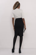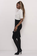 Az AMNESIA Atef szoknya a klasszikus ceruzaszoknya modern, elegáns változata. Szűk fazonja kiemeli a nőies vonalakat, miközben a fekete tartufino anyag időtlen stílust sugároz. Az elegáns signature gombok finom részletekkel teszik különlegessé ezt az alapdarabot. Tökéletes választás irodai outfitekhez vagy elegánsabb alkalmakra, amikor a letisztult megjelenés a cél.