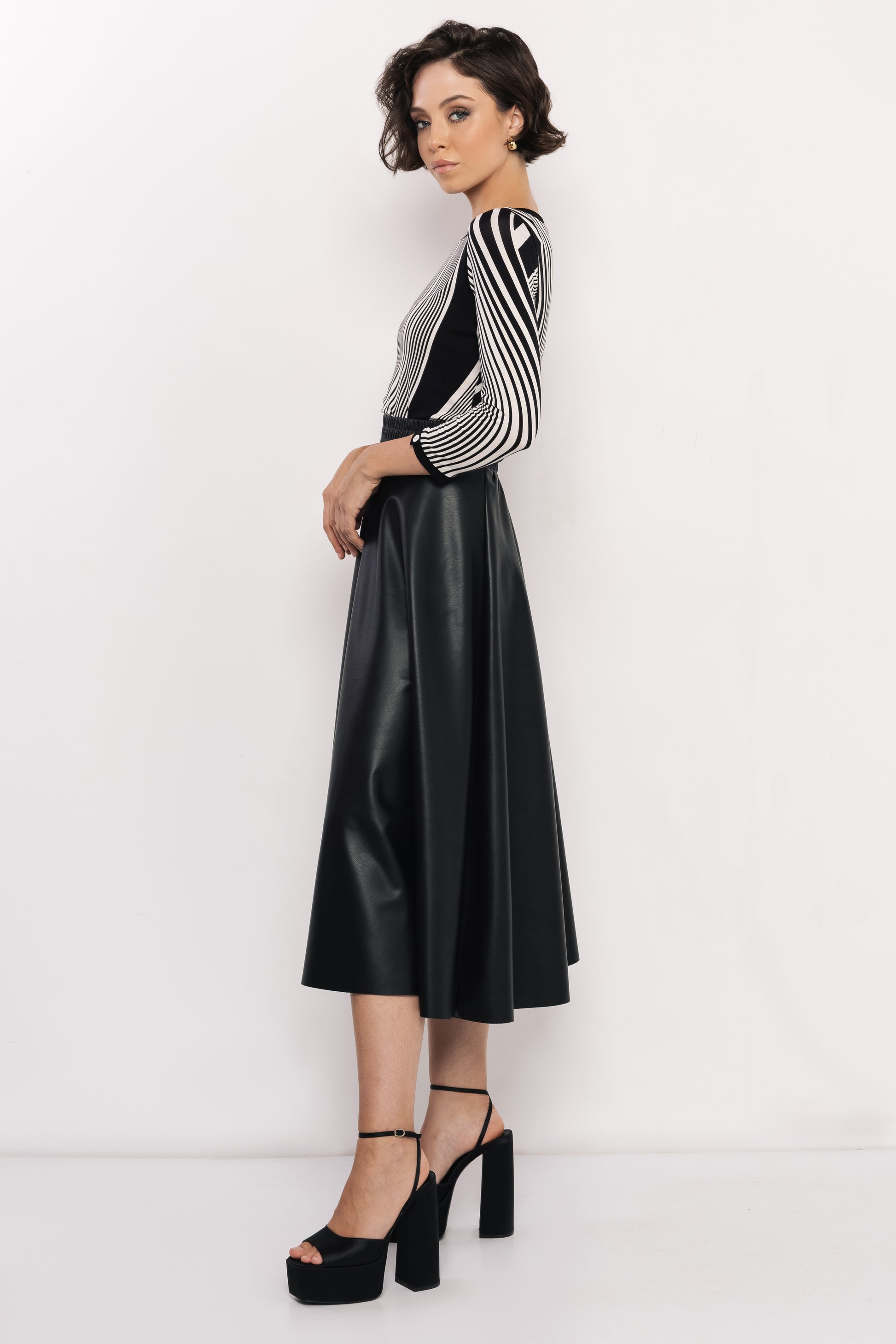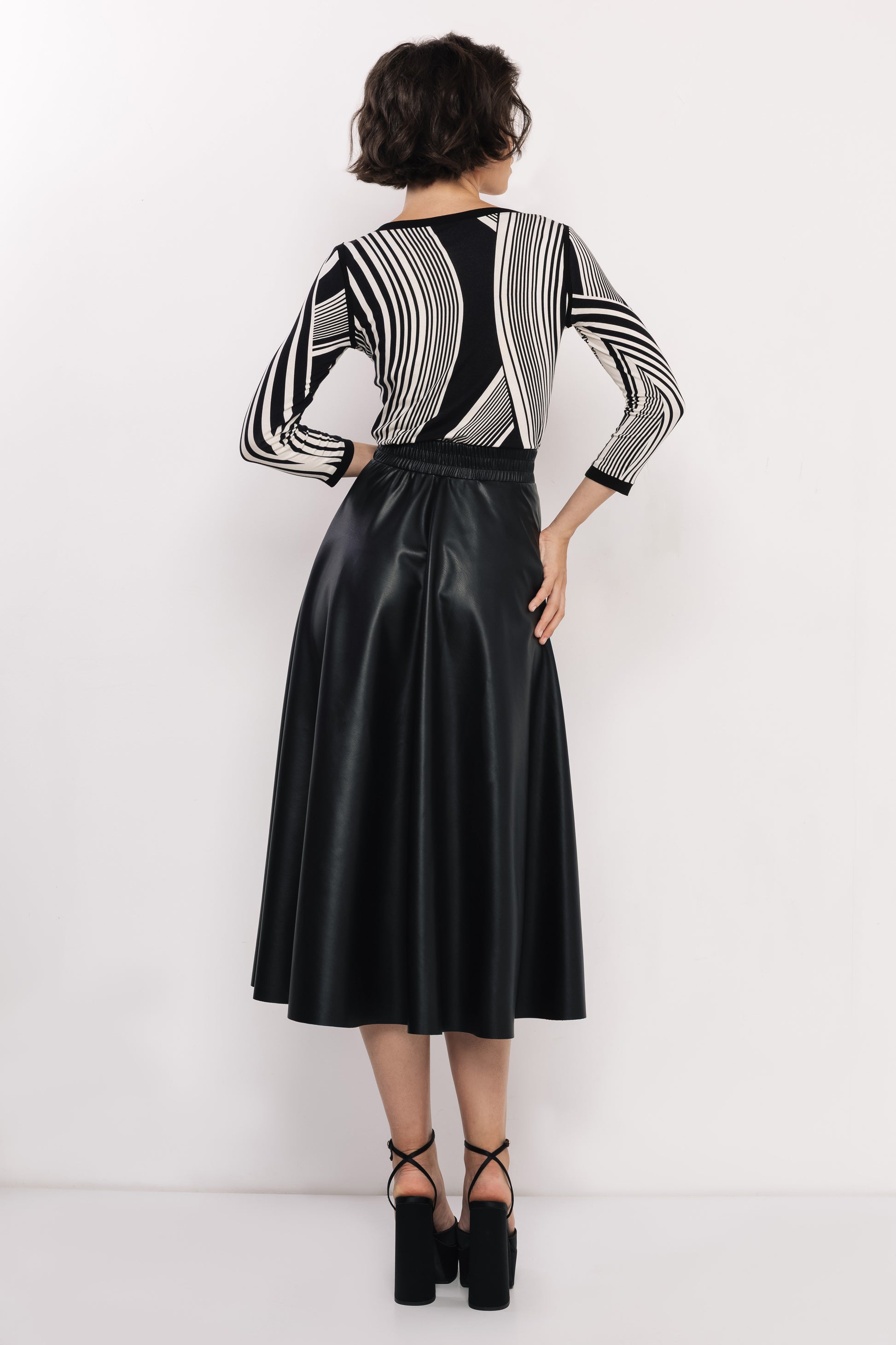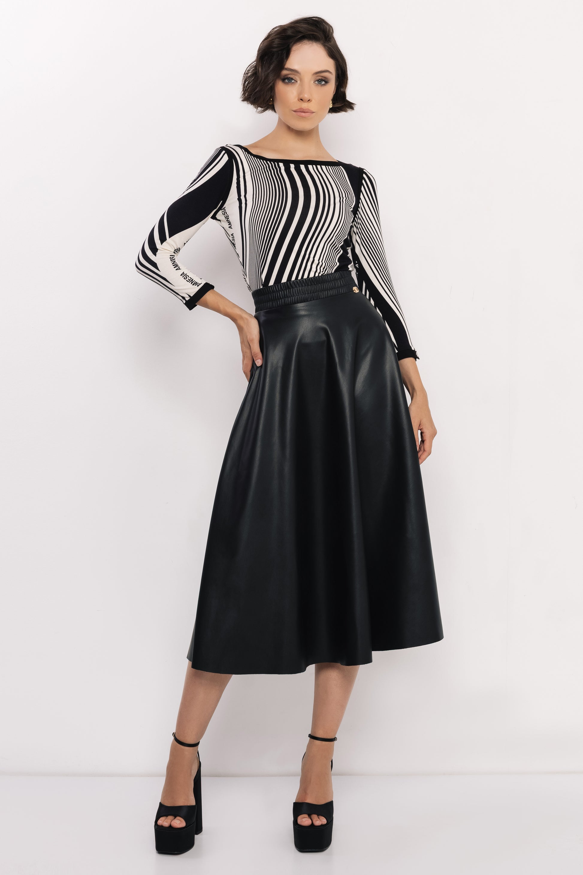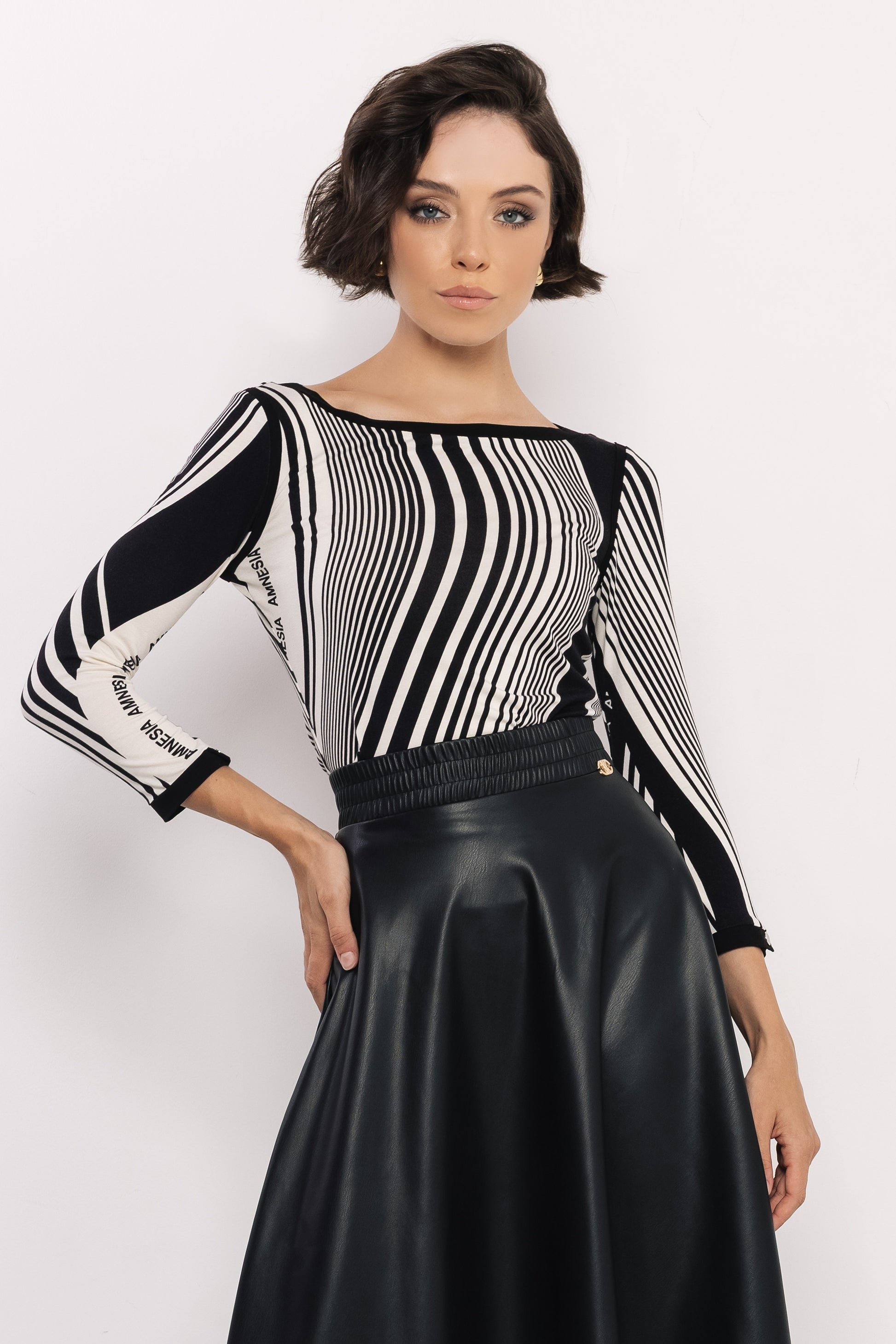 Az AMNESIA Balan felső egyszerre modern és időtlen – különleges mintájval azonnal a figyelem középpontjába emel. Letisztult vonalvezetése a nőiességet hangsúlyozza, miközben játékos, mégis elegáns hatást kelt. Puha viszkózból készült, egyméretes fazonja kényelmesen követi a test vonalait, a csónaknyakkal kialakított felsőrész pedig kifinomult keretet ad az arc és a váll vonalának. A fekete-fehér Optical Stripes minta az AMNESIA saját, logóval átszőtt tervezése, amely limitált darabszámban érkezik a kollekcióba. Ez az exkluzív anyag több ikonikus darabon is visszaköszön – fedezd fel a többi darabot is!