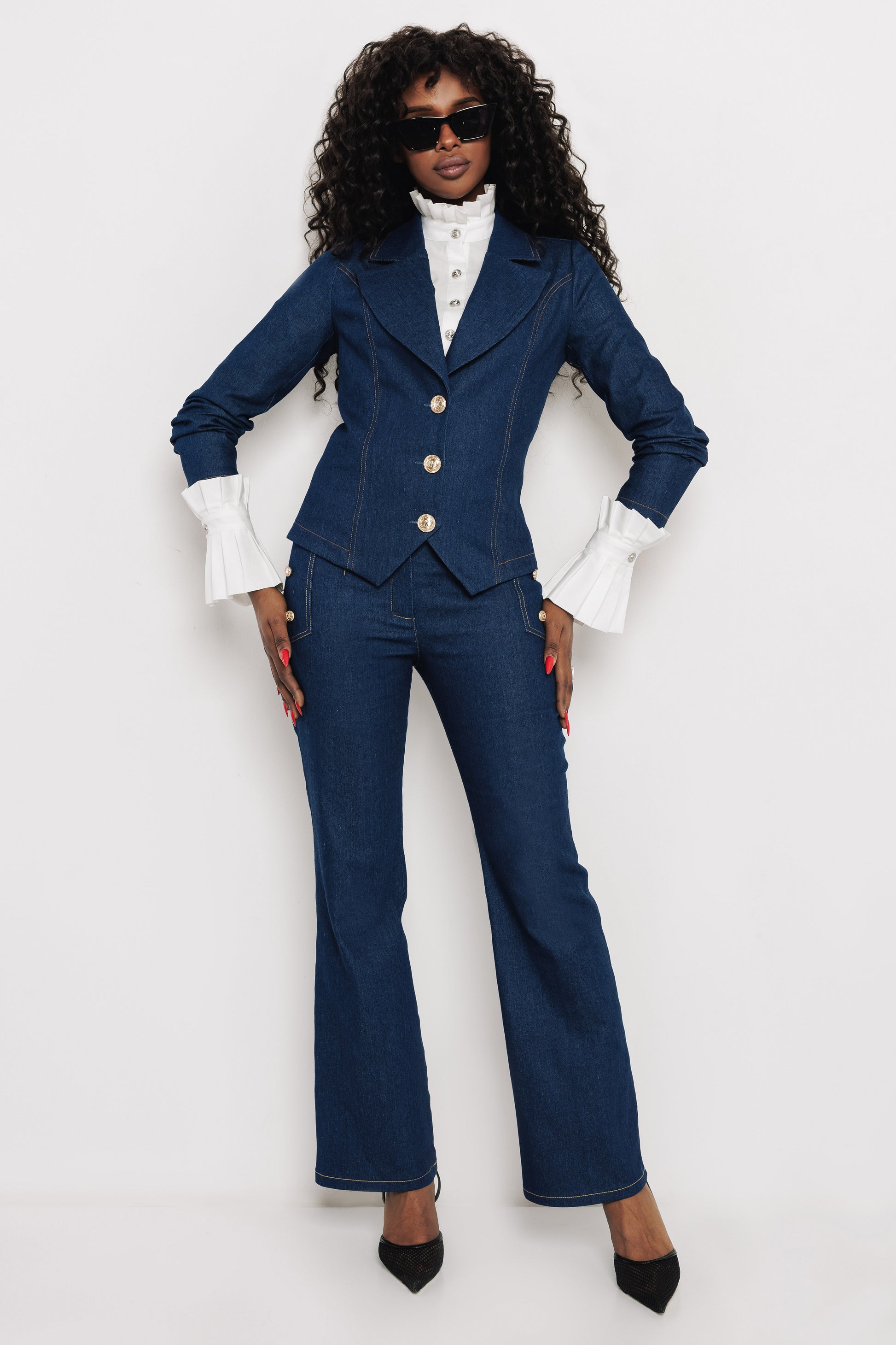 Az AMNESIA Biana zakó modern, mégis időtálló darab, amely egyszerre ad magabiztos megjelenést és laza farmer vibeot. Strukturált szabásával szépen kiemeli a derekat, az arany gombok pedig finom eleganciát adnak az összhatáshoz. Olyan alapdarab, amit könnyen beillesztesz a hétköznapi és az alkalmi szettjeidbe is. Farmer anyagból készült, ami kényelmes viselet egész napon át. A klasszikus galléros kialakítás és a karcsúsított szabás nőies sziluettet formál, miközben a díszgombok igényes megjelenést biztosítanak. Farmerkék színben érhető el, S, M és L méretben. Viseld az AMNESIA Reilly blúzzal, ha kontrasztos, letisztult összhatást szeretnél, és kombináld az AMNESIA Vina szoknyával szettben, ha komplett farmer összeállításra vágysz. Magassarkúval elegánsabb, lapos cipővel lazább irányba viheted el. Szerezd be az amnesia.hu webshopon, amíg elérhető!