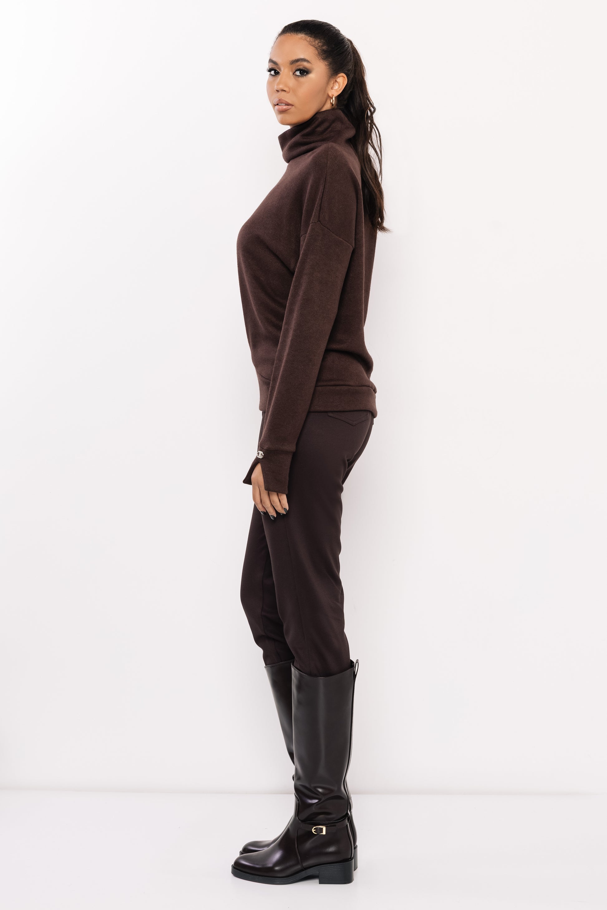 Az AMNESIA Blem felső letisztult fazonja és vastag kötött anyaga azonnal a kedvenc őszi-téli daraboddá válik. A garbónyak nőies és praktikus, a díszgombos ujja pedig finom részlet, ami különlegessé teszi ezt az alapdarabot.