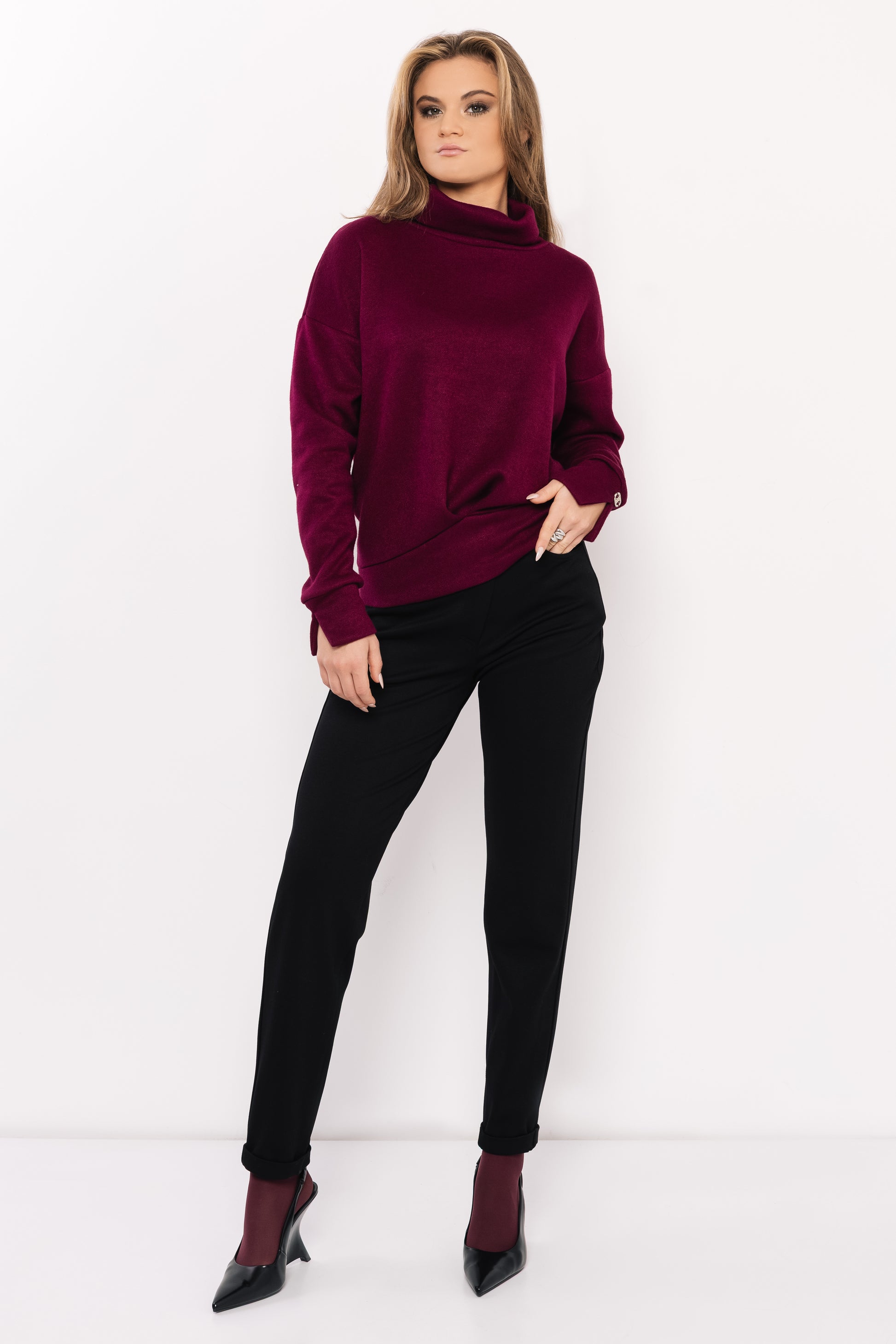 Az AMNESIA Blem felső letisztult fazonja és vastag kötött anyaga azonnal a kedvenc őszi-téli daraboddá válik. A garbónyak nőies és praktikus, a díszgombos ujja pedig finom részlet, ami különlegessé teszi ezt az alapdarabot. Elérhető fekete, csokibarna és bordó színben, így könnyen beilleszthető bármelyik gardróbba. Kombináld bőrhatású nadrággal, például az AMNESIA Kabul modellel, vagy viseld ceruzaszoknyával, ha elegánsabb hatást szeretnél. Egy stílusos, sokoldalú felső, amit újra és újra elő fogsz venni – válaszd ki a kedvenc árnyalatod az amnesia.hu webshopon!