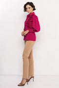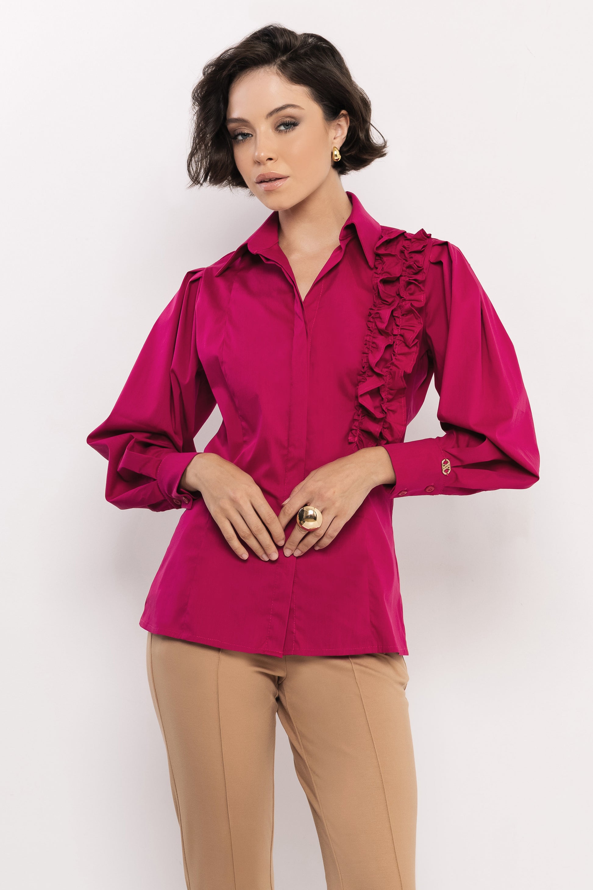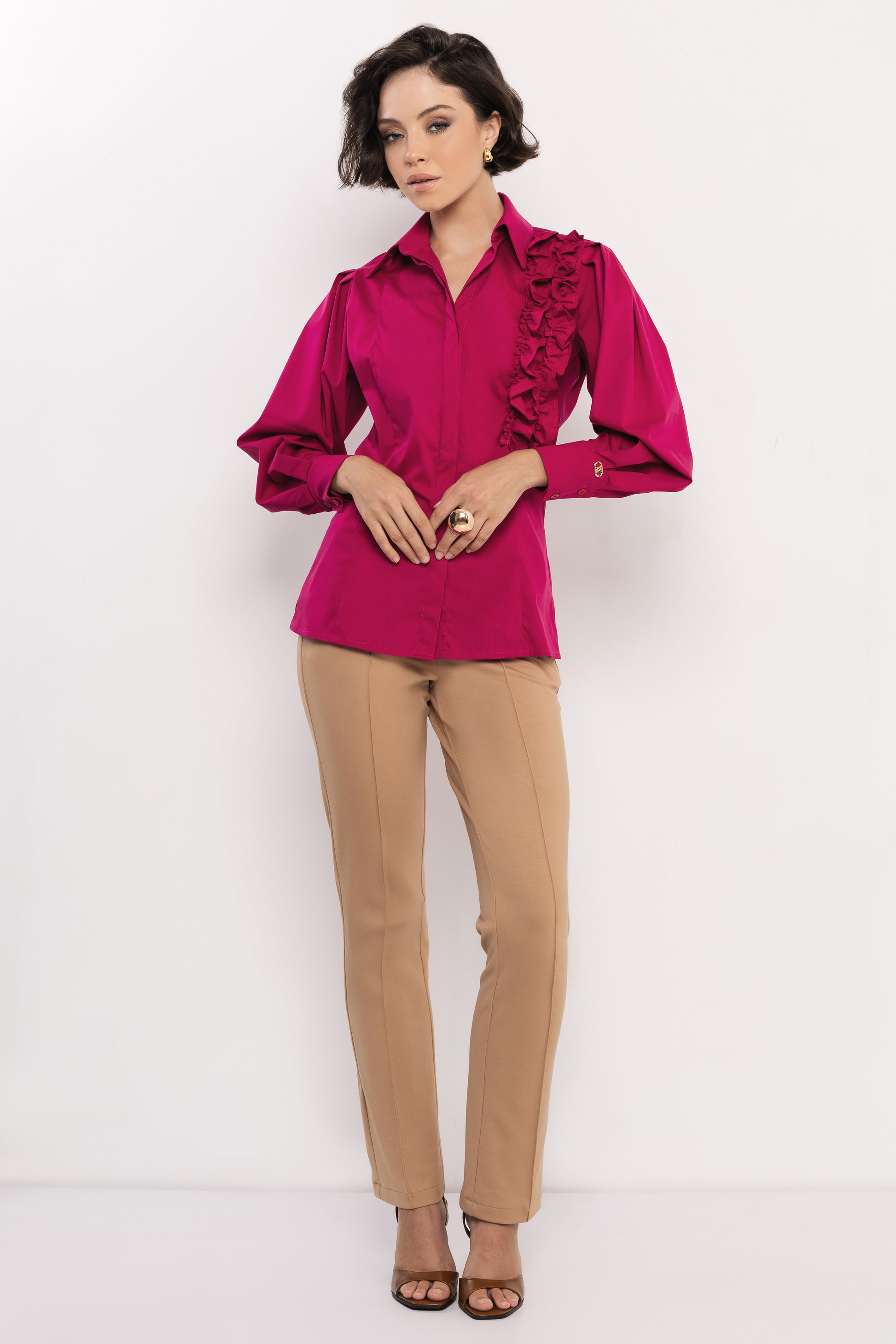 Az AMNESIA Boston blúz klasszikus gallérja és finoman puffos ujja időtlen sikket sugall, míg az aszimmetrikus, fodrokkal díszített vállrész játékos, mégis kifinomult részlet, amely különlegessé teszi a darabot. A puplin anyag könnyed tartást ad, miközben egész nap kellemes viseletet biztosít. Fehér és fuxia árnyalatban elérhető, így egyszerre kínál letisztult alapot és élénk, karakteres választást. A szabásvonal a klasszikus női blúzok hagyományait idézi, de modern csavarral, amely bármilyen outfitet feldob. Szoknyával kombinálva elegáns, nadrággal pedig modern és üzleties hatást kelt. Viseld kedvenc AMNESIA nadrágoddal vagy szoknyáddal, és mutasd meg, hogyan lehet egy blúz egyszerre klasszikus és trendi – fedezd fel az AMNESIA Boston blúzt az amnesia.hu webshopon, és emeld új szintre a gardróbodat!