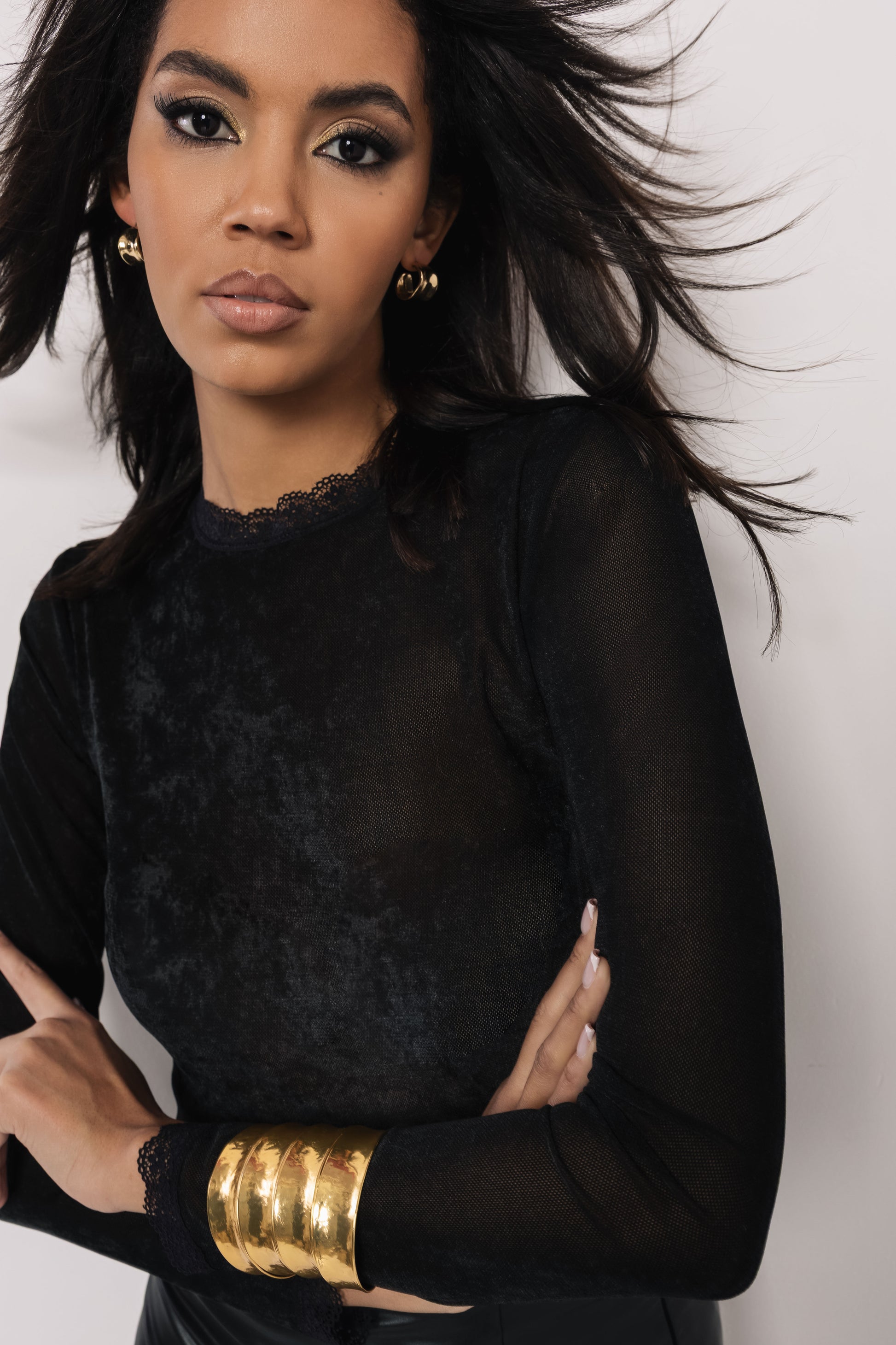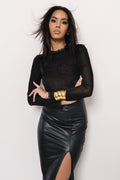 Az AMNESIA Chris felső a csillogás és a finom részletek kedvelőinek tökéletes választás: nőies, vagány és extra karaktert ad az alkalmi outfitnek. A necc ujjak és a puha zsenília kombinációja különlegessé teszi megjelenésedet. A könnyű, rugalmas felsőrész szépen követi a vonalakat, miközben a necc betétek légies, izgalmas hatást adnak. Az egyméretes kialakítás több alkaton is jól mutat, mert lágyan simul a felsőtestre, mégis tartja a formáját. Viseld műbőr szoknyával vagy nadrággal, ha esti, különleges alkalomra készülsz — ez a felső azonnal eleganciát visz a a megjelenésedbe. Fedezd fel az amnesia.hu webshopon!