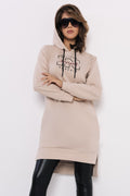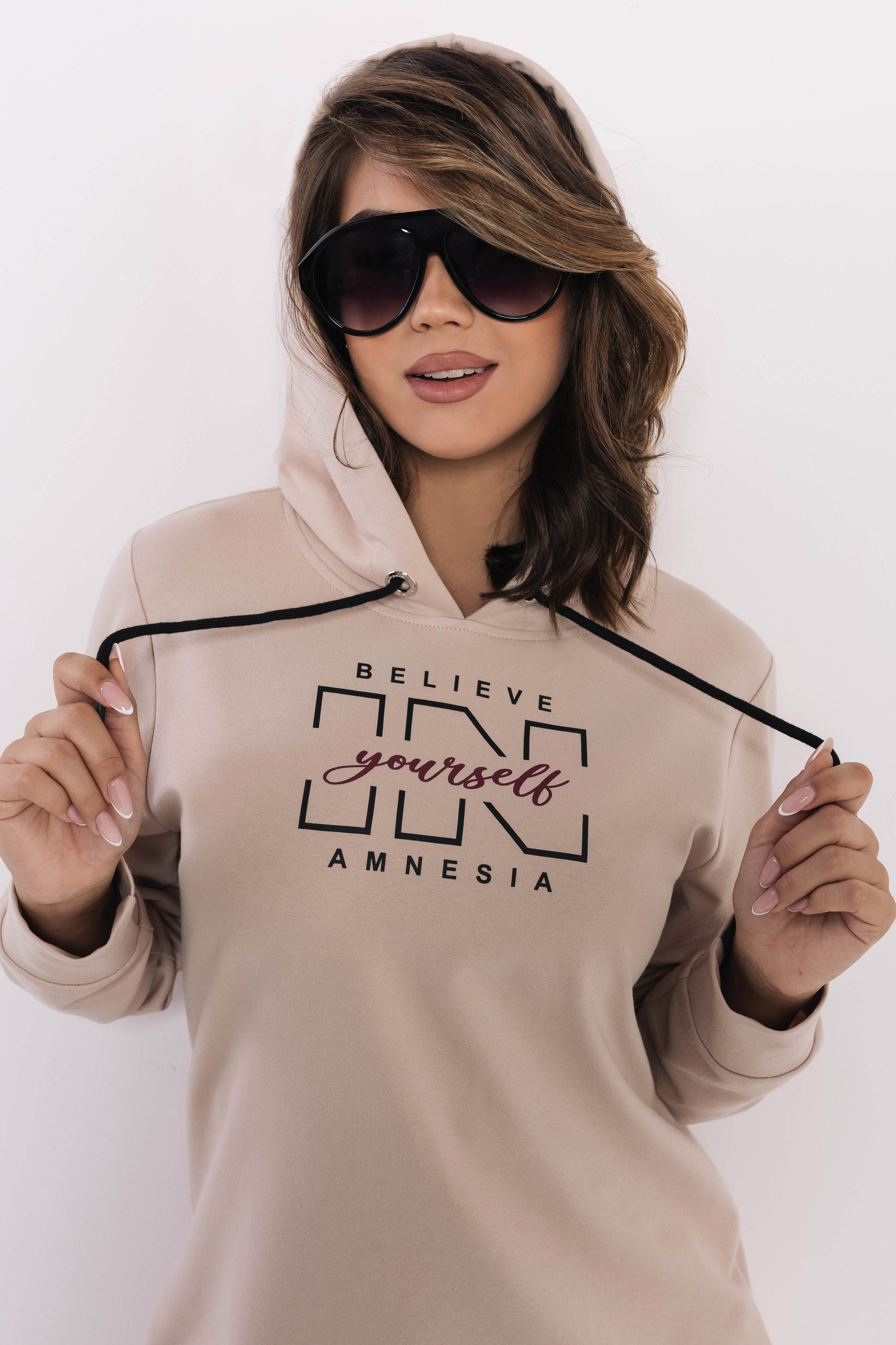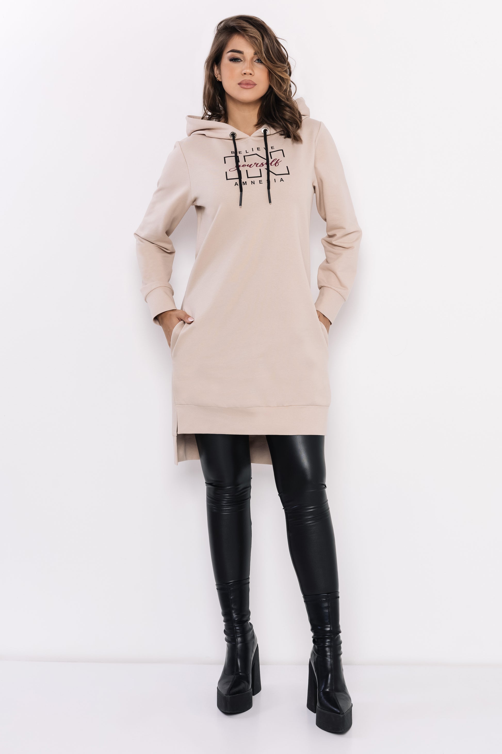 Az AMNESIA Csőre 2 tunika sportos, mégis nőies fazonjával a lezser elegancia megtestesítője. Klasszikus, enyhén A-vonalú szabása, hosszított háta és oldalhasítékai kényelmet biztosítanak, míg a kapucni és a logónyomás modern, karakteres részletként teszi teljessé az összhatást. A puha futter anyag tökéletes választás a hűvösebb napokra – meleg, mégis jól szellőzik, így ideális városi rohanós napokra vagy hétvégi pihenéshez is. Válaszd kedvenc árnyalatodban: bézs, csoki, fekete vagy bordó színben, hogy a hangulatodhoz és gardróbodhoz igazíthasd. Viseld bőrszoknyával és csizmával, ha vagány nőies stílust keresel, vagy leggingsszel és sportcipővel a mindennapi kényelmes szettekhez. Szerezd be kedvenc színedben az amnesia.hu webshopon, amíg elérhető!