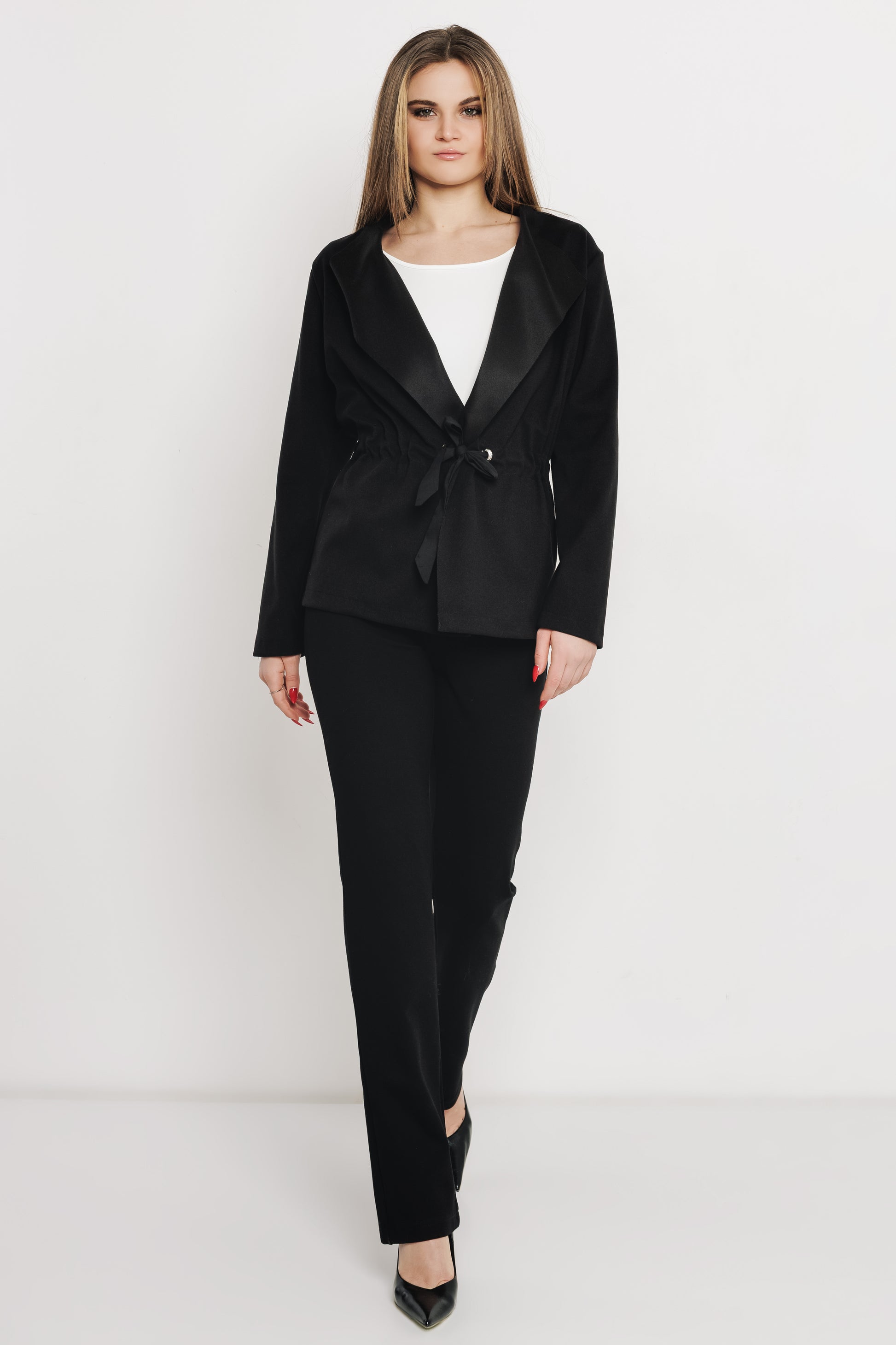Az AMNESIA Eton kardigán letisztult, jól kombinálható darab, amely átmeneti időszakban ideális választás. Egyszerű szabása miatt könnyen beilleszthető a mindennapi ruhatárba, mégis rendezett, igényes megjelenést ad. Olyan alapréteg, amely irodai és városi szettekhez is jól illeszkedik. A kabátszövet anyag tartást ad a fazonnak, miközben nem nehéz és kényelmes viselet. A deréknál megköthető övvel alakítható a sziluett, a hajtókás kialakítás klasszikus hatást kelt. S/M és L/XL méretben készül, fekete, púder és drapp színben. Viselheted elegáns nadrággal és blúzzal munkába, de farmerrel és egyszerű felsővel is jól működik. Magassarkúval nőiesebb, sportcipővel lazább irányba vihető, így hétköznapokra és alkalmi programokra egyaránt megfelelő.