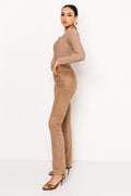 Az AMNESIA Fitto nadrág a letisztult stílus és a kényelem találkozása, amely a velúr puha tapintásával és időtálló camel színével minden szezonban tökéletes választás. Modern, mégis klasszikus vonalvezetése kiemeli az alakot, miközben elegáns megjelenést kölcsönöz. A magasított derékrész és az egyenes szár optikailag nyújtja a sziluettet, a finom részletek és a letisztult szabás pedig biztosítják, hogy a nadrág bármilyen alkalomhoz illeszkedjen. Kényelmes viselet a mindennapokban, ugyanakkor elegáns összeállítások részeként is megállja a helyét. S, M, L és XL méretekben elérhető, így mindenki megtalálhatja a számára ideális fazont. Tökéletes választás önmagában, de szettben az AMNESIA Whole kabáttal igazán kifinomult hatást kelt. Szerezd be most az amnesia.hu webshopról, és emeld új szintre a gardróbod!