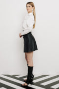 Az AMNESIA Fizzi szoknya rövid fazonjával és átgondolt részleteivel friss, nőies megjelenést ad. A különlegesen elhelyezett gombolás karaktert ad a darabnak, miközben megmarad az AMNESIA-ra jellemző letisztult, nőies stílus. A kollekció könnyen kombinálható darabjai közé tartozik.Gyűrt műbőrből készült, amely jól tartja a formáját, nem gyűrődik viselés közben, és rendezett összhatást biztosít. Ideális választás azok számára, akik rövidebb, határozott vonalvezetésű szoknyát keresnek. Az AMNESIA Bolzano felsővel vagy a Kolan blúzzal együtt viselve kiegyensúlyozott, nőies szettet alkot. Ajánlott csajos programokra, városi sétákhoz vagy esti alkalmakra, amikor egy karakteres, mégis elegáns darabra van szükség.