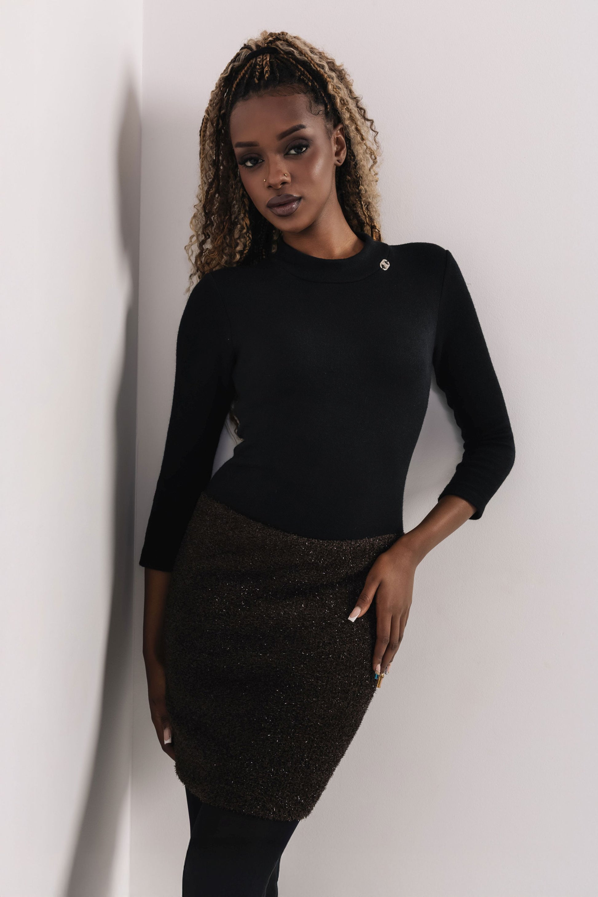 Az AMNESIA Frutta ruha egy könnyen viselhető, mégis látványos darab: a lurex szövet finom csillogása nőies, alkalmi karaktert ad neki, miközben a fazonja kényelmes és jól viselhető. A ruha letisztult szabással készül: enyhén karcsúsított felsőrésszel és egy kényelmes, testkövető szoknyarésszel. Drapp és csoki színben, S és M méretben érhető el, és tökéletesen illik az AMNESIA Petric blézerhez, ha elegáns, egységes szettet szeretnél. Viselheted csizmával vagy magassarkú cipővel, kabáttal vagy blézerrel – mindenhez szépen alkalmazkodik. Ha szereted a praktikus, mégis különleges ruhákat, az AMNESIA Frutta ruhát érdemes most a kosaradba tenni az amnesia.hu webshopon.