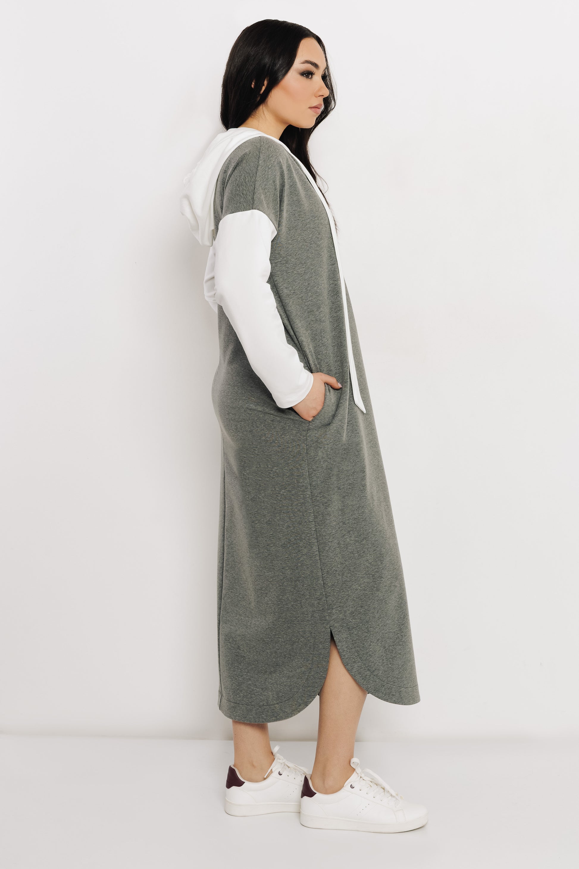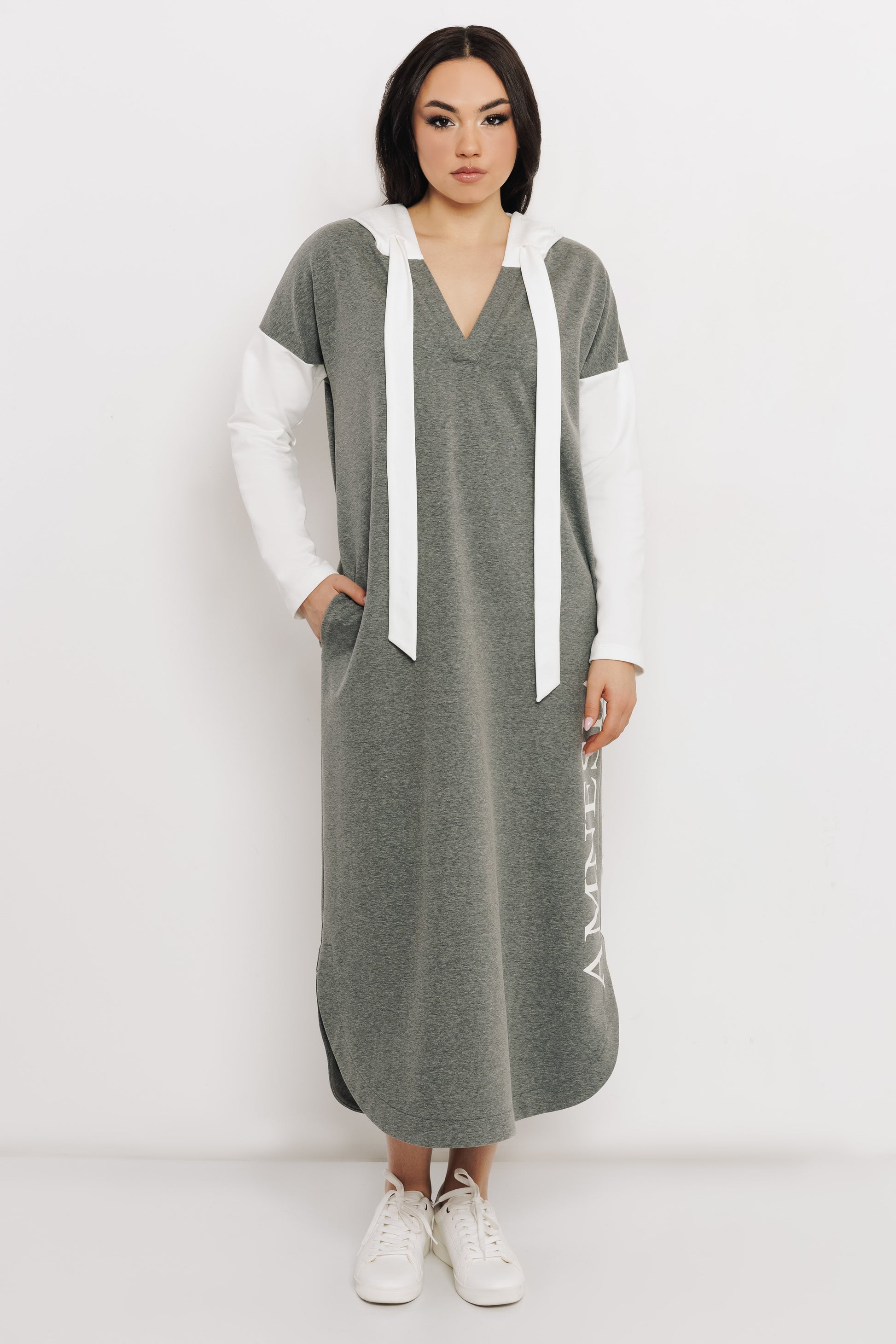 AMNESIA Gizel ruha letisztult, sportosan nőies darab a tavaszi kollekcióból. A szürke futter anyagot ekrü részletek teszik különlegessé, miközben az összhatás harmonikus és könnyen kombinálható. A futter kellemesen puha, rugalmas és jól tartja a formáját. A hosszabb, lezser fazon kényelmes mozgást biztosít, mégis rendezett megjelenést ad, így ideális választás a rohanós hétköznapokra. Sportcipővel és egyszerű kiegészítőkkel tökéletes, modern szettet alkot. Szerezd be az amnesia.hu webshopon, amíg elérhető!