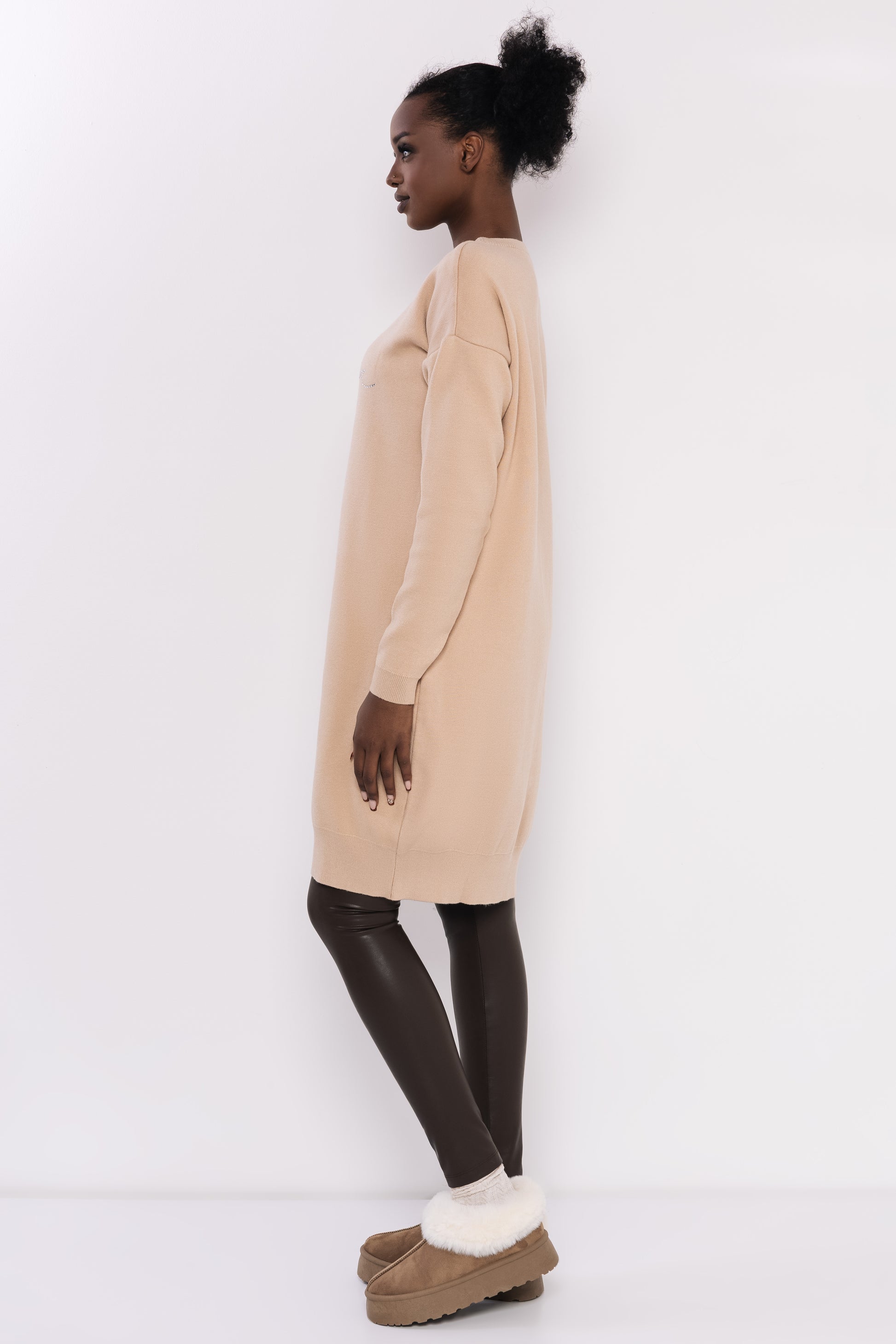 Az AMNESIA Goldi köves tunika tökéletes választás a stílusos és kényelmes viselet kedvelőinek. Lezser, hosszú fazonja és finom, meleg anyaga gondoskodik a komfortos érzetért, miközben a kövekből kirakott logóminta elegáns és egyedi megjelenést biztosít. Bordó, zsálya, eper, bézs, camel, ekrü és fekete színekben elérhető, így minden alkalomra könnyen megtalálhatod a hozzád illő árnyalatot. Egy sokoldalúan kombinálható darab, amely feldobja a hétköznapi és különleges szetteket egyaránt!