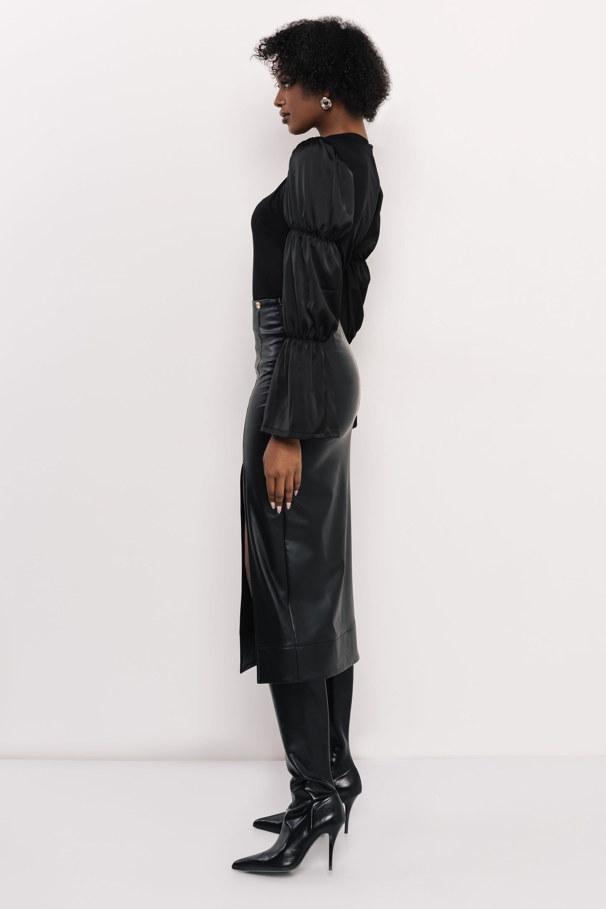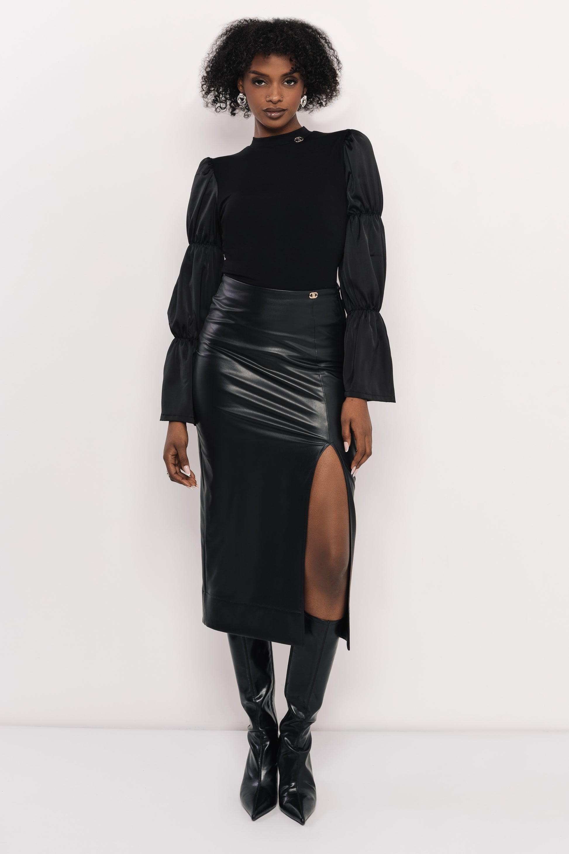 Az AMNESIA Hunt szoknya egy határozott, modern darab, amelynek a különlegességet a fényes műbőr és a hosszú slicc adja. Fekete színben érhető el, így könnyen kombinálható elegáns és parti összeállításokkal is. Remekül mutat szatén bodykkal – például az AMNESIA Suzy modellel –, de egy szűk, kötött felsővel és csizmával is erős, modern hatást kelt. Ha egy olyan műbőr szoknyát keresel, amely egyszerű vonalvezetésével mégis látványos és sokféleképpen viselhető, a Hunt szoknya remek választás – nézd meg az amnesia.hu webshopon, és állíts össze vele vagány, nőies szetteket.