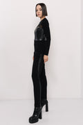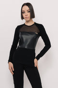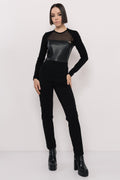 Az AMNESIA Husky felső a modern dizájn és szexi stílus tökéletes kombinációja. Szűk fazonja kiemeli az alakot, míg a műbőr, punto és szexi tüll részletek izgalmas, egyedi megjelenést biztosítanak. Fekete színben érhető el, így könnyen variálható egy vagány szetthez. Egy különleges darab, amely garantáltan magabiztos megjelenést kölcsönöz!
