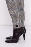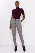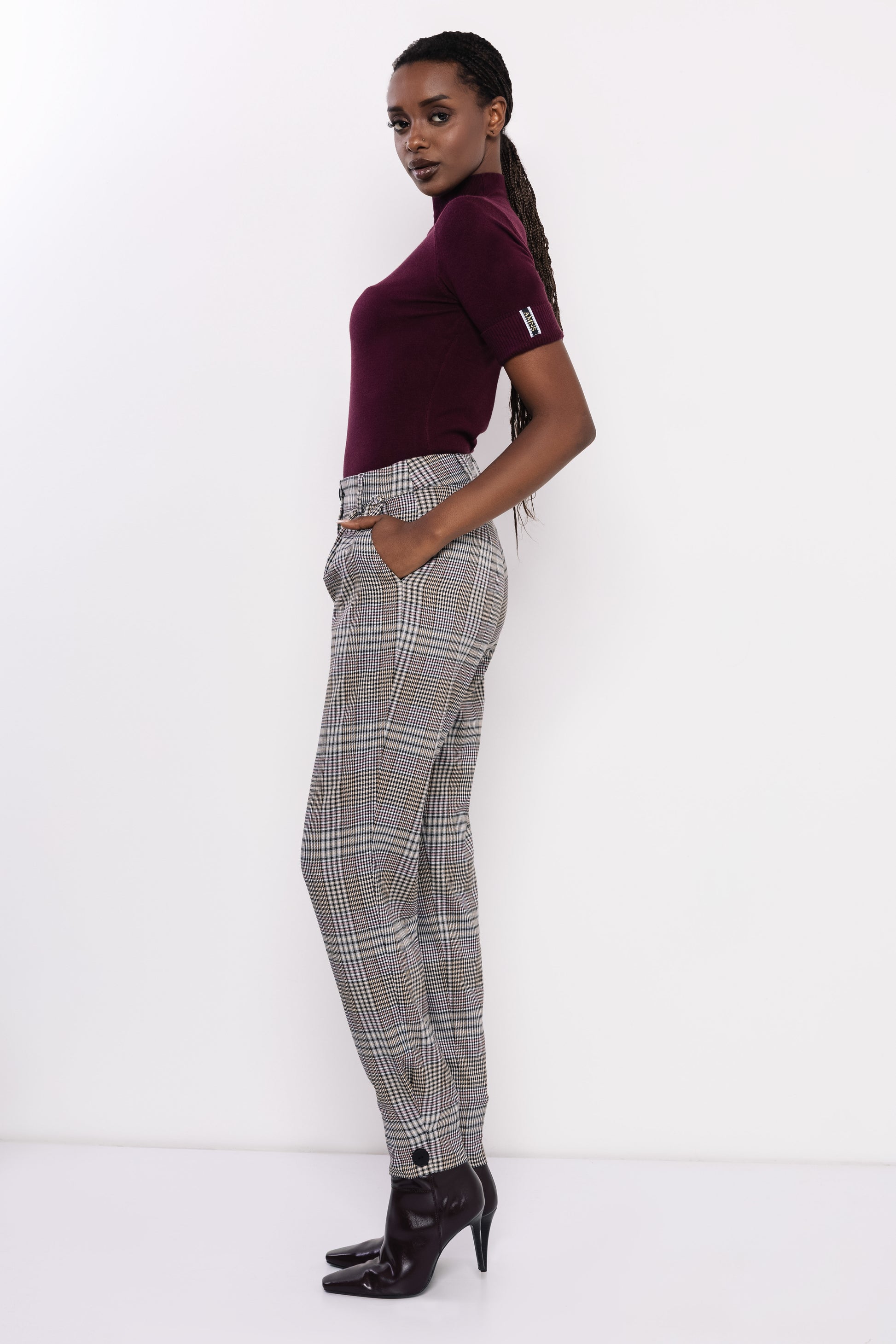 Az AMNESIA Jozefa nadrág a klasszikus kockás mintát modern, nőies szabással ötvözi. Magasított dereka és enyhén szűkülő szára optikailag nyújtja a lábat, miközben a finom hajtott részletek és az oldalzsebek kényelmes viseletet biztosítanak. Az elülső gombos záródás és a szárvégen elhelyezett díszgombok apró, mégis hangsúlyos részletekké válnak, amelyek eleganciát és karaktert adnak a nadrágnak. Minőségi szövet anyaga puha tapintású, mégis tartást adó, így tökéletes választás mind irodai, mind hétköznapi megjelenéshez. A klasszikus kockás minta időtlen stílust képvisel, amely remekül kombinálható garbókkal, blézerekkel vagy akár egy sportos dzsekivel is. Viseld az AMNESIA Lekon dzsekivel szettben, vagy párosítsd egyszínű felsőkkel, ha a nadrág mintáját szeretnéd kiemelni. Fedezd fel a részletekben rejlő eleganciát az amnesia.hu webshopon, és tedd a Jozefa nadrágot gardróbod új kedvencévé!